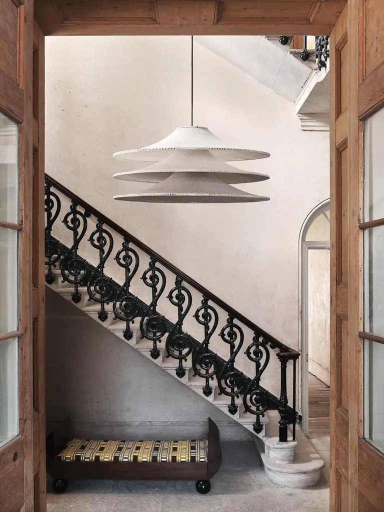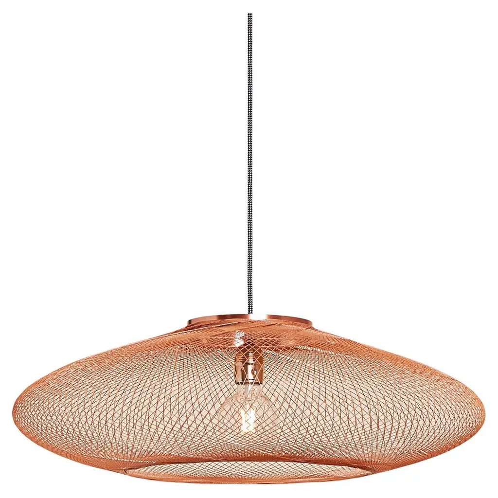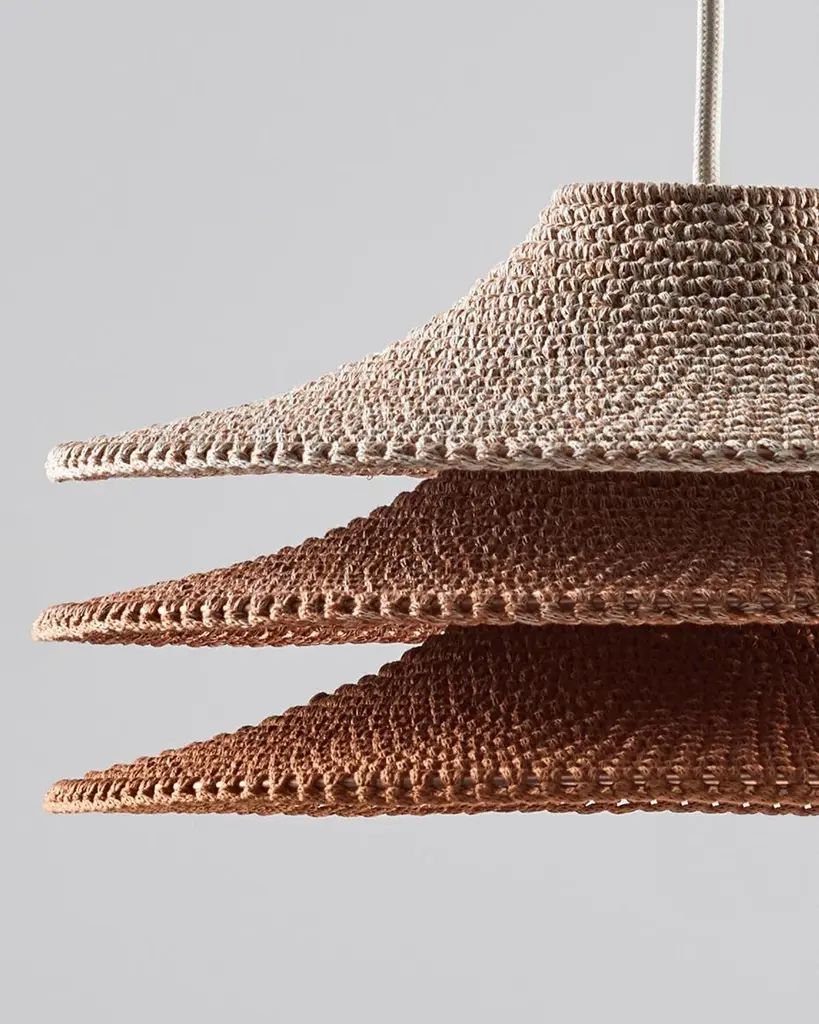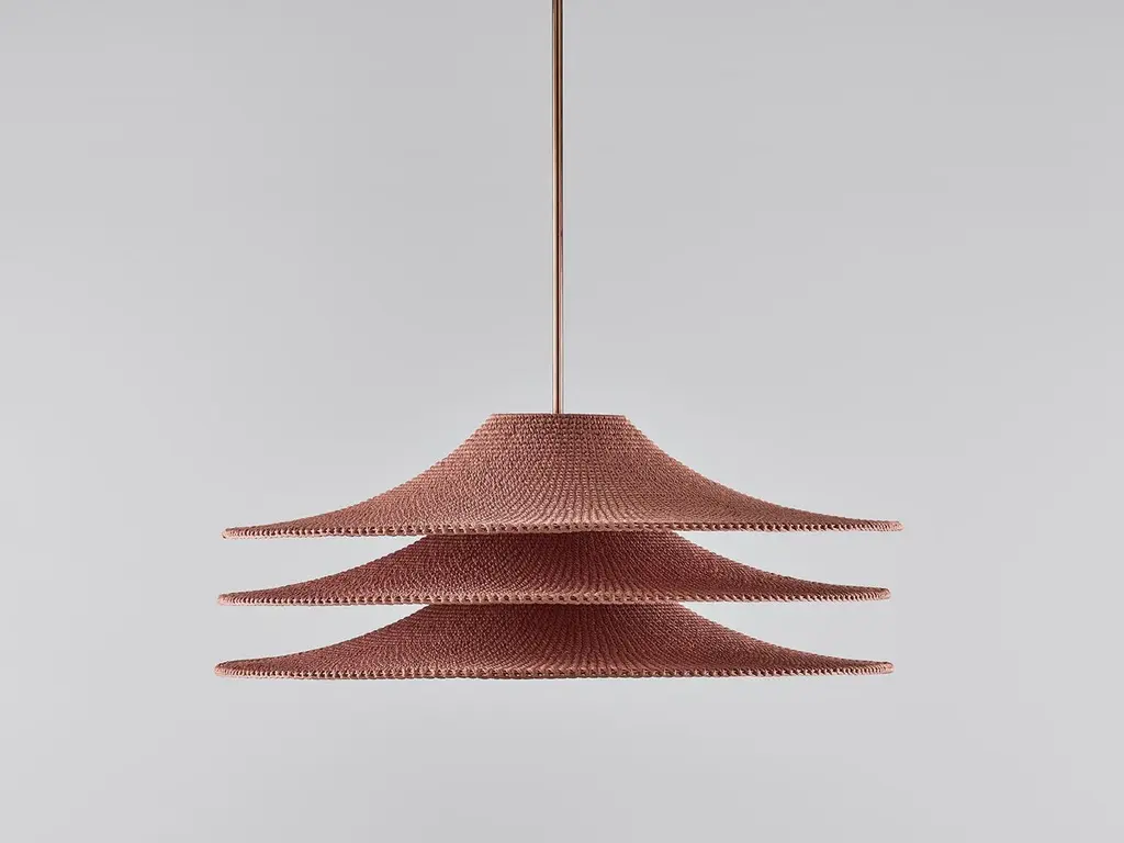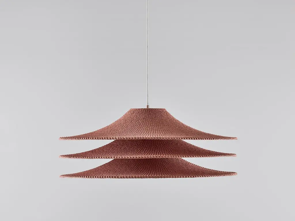 Large simple shade 03 pendant lamp by Naomi PaulDimensions: D 80 x H 35 cmMaterials: Metal frame, Egyptian cotton cord.Color: Dusky Pink.Available in other colors and in 4 sizes: D 30, D 50, D 60, D 80 cm.Available in plain, 50/50, trim, ombré or bamboo color finishes.SIMPLE SHADE collection is the essence of a shade. One simple design with transformative properties in singular and multiple forms, Simple Shade features wide-brimmed sleek silhouettes and effortless grace. Using Japanese philosophy to mindfully design space and object as one. This is the only collection which completely collapses to a flat state. A clean look with an essential function.Naomi Paul is a London design studio where hand crochet is elevated from craft to art.Naomi Paul’s lighting designs are unique. Iconic silhouettes combine with functional integrity. Together with her highly skilled team, the studio is dedicated to perfection.The crocheted lighting collections include simple and statement pendants. Luminescence and acoustics are enhanced by uniform stitching and quality of the fabric. Each piece glows with a warm ambience, a result of the time, care and attention to detail invested by hand-making.Collaborating with internationally renowned architects and interior designers, Naomi Paul’s designs transform spaces into exceptional places.All our lamps can be wired according to each country. If sold to the USA it will be wired for the USA for instance.