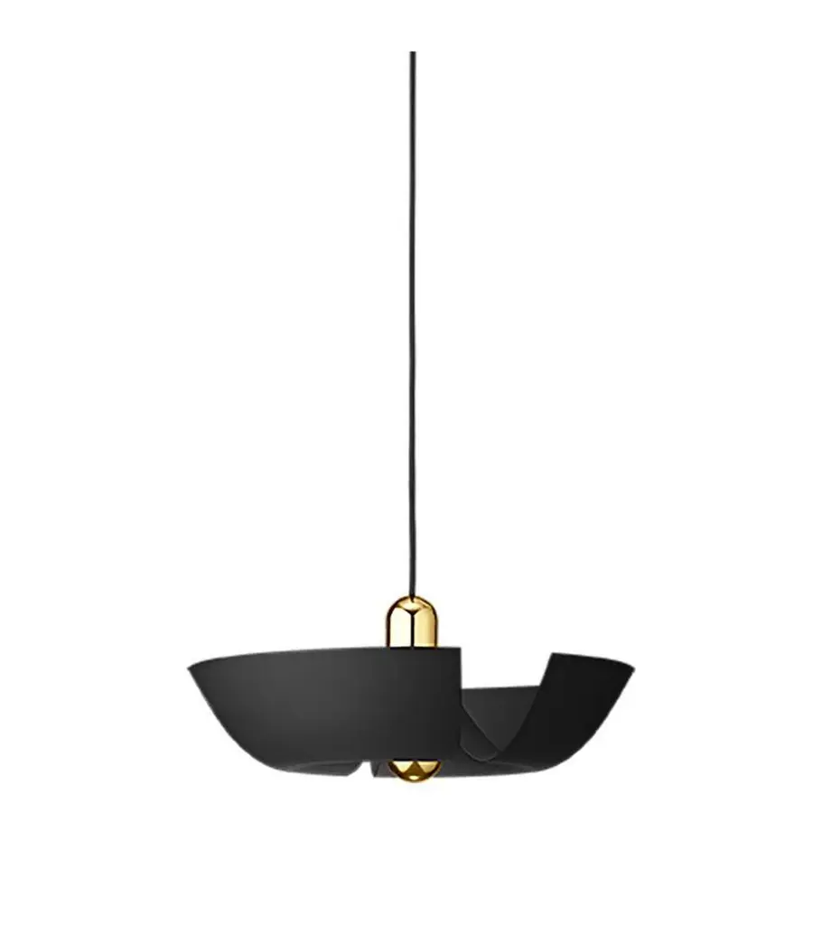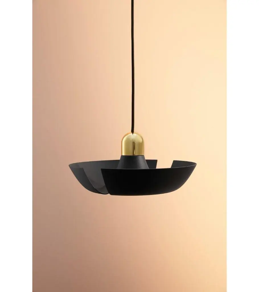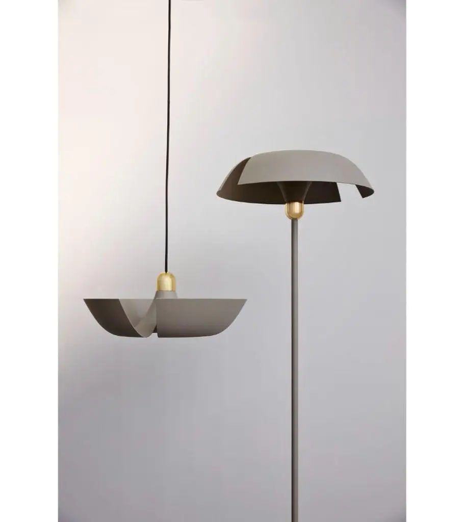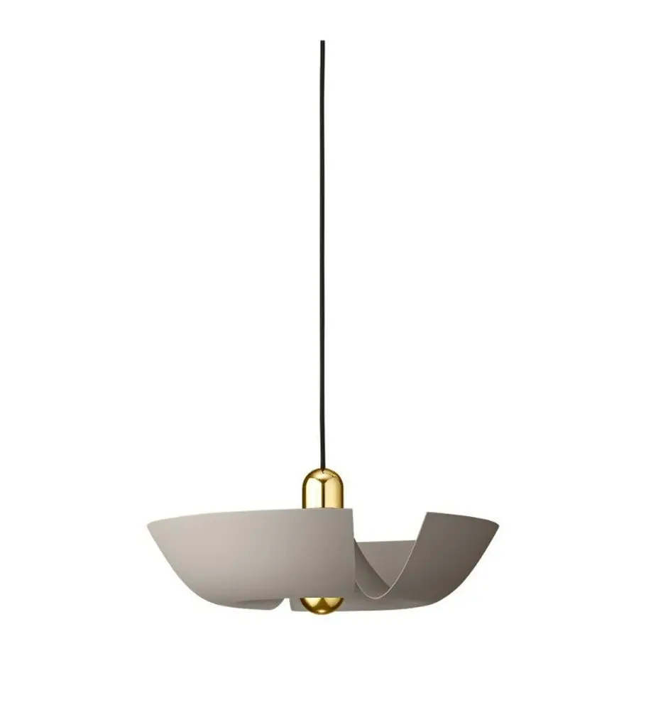 Large Taupe and Gold Contemporary pendant lamp Dimensions: Diameter 45 x H 18 cm Materials: Aluminum with Powder-Coated. Brass plated details, Porcelain socket, Plastic switch, and Black textile cord. Details: For all lamps, the light source is E27 max 25W & 220/240 voltage. The lamps can also be used with light dimmers to adjust brightness. We recommend a semi-coated 4W light source for a special effect that comes together with the design of the lamps.Tested with: IP20Compliant with: CEAlso available in Black and, in size Small. Please contact us for more information. This product is not wired for USA. Does not comply with US Standards.Have the CYCNUS pendant hanging above the dining table for an open and gathering atmosphere or hang it in an empty corner for a more decorative effect. Add new dimensions to your living space with the CYCNUS lamps series. CYCNUS means ‘swan’ and the entirety of the collection is inspired by this majestic bird. The lamps have been designed with a determined focus to open up light and create an upward effect resembling the elegant buck in the wings of swans taking off.