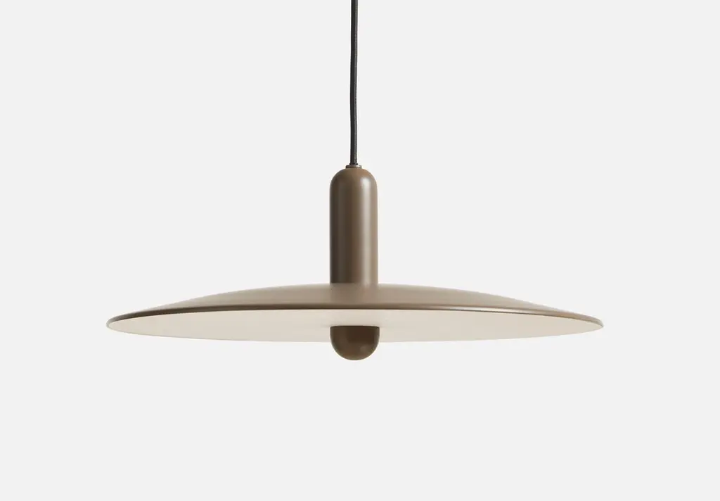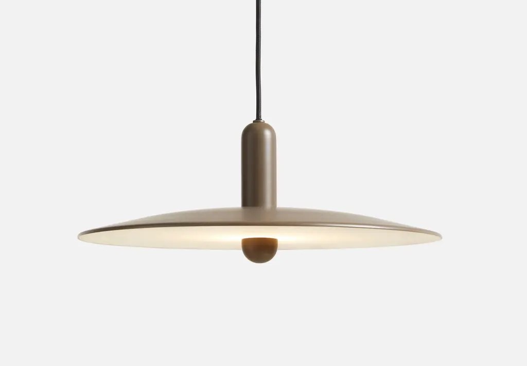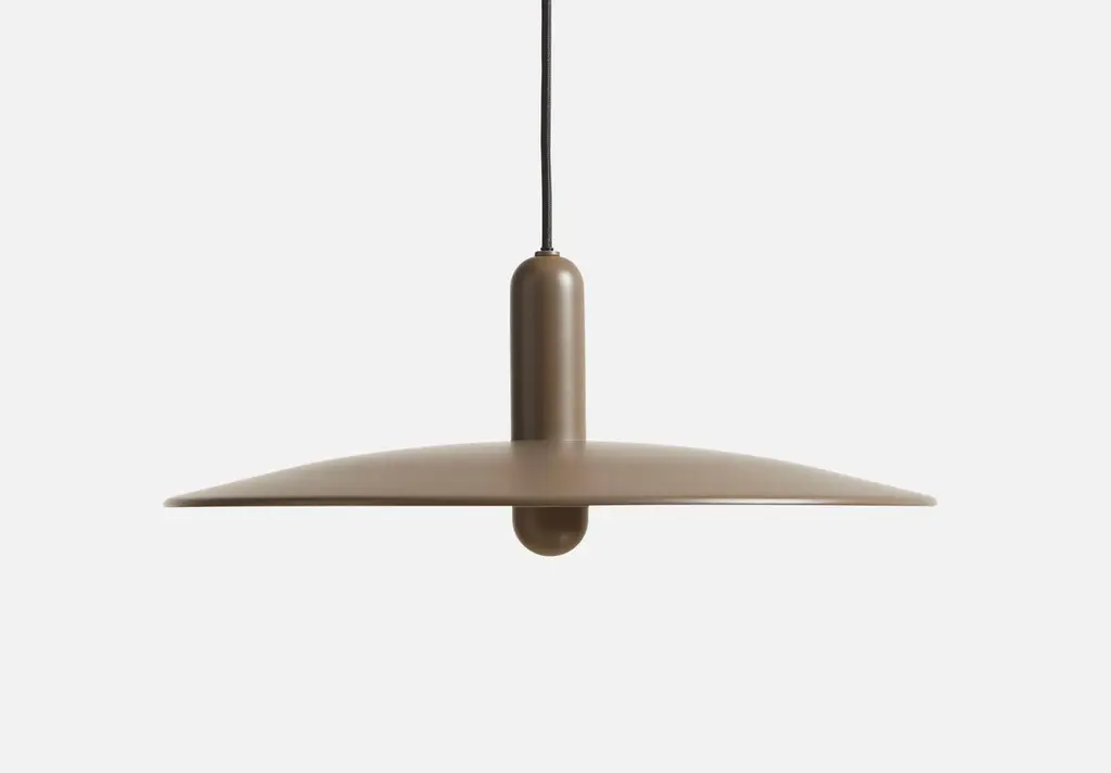 Large Taupe Lu pendant lamp by BeaverhausenMaterials: metal.Dimensions: D 45 x H 22 cmAvailable in black or taupe and in 2 sizes: D 33, D 45 cm.Beaverhausen is a Brussels-based design studio founded by Mimy A. Diar and Ad Luijten. Both have a background as Art Directors in the communication industry, which is expressed in the strong sense of storytelling that is reflected in all their designs. After a career in advertising, the couple decided to use their acquired skills for their true calling: design.Beaverhausen creates visual stories that manifest in furniture, accessories, lighting and interiors. Every project has its own topic emphasizing on the context of use, manufacturing process or on a more poetic source of inspiration. They are always aiming to create a stor y that connects to its surroundings in a simple and engaging way. LU pendant is the design studio’s f irst lighting design. The pendant is all about two contrasting forms and their interaction with each other. The combination of these twodistinctive shapes results in an appealing design that is perfectly balanced: modest in a formal setting and playful in a more vibrant environment.WOUDThe founders, Mia and Torben Koed, decided to put their 30 years of experience into a new project. It was time for a change and a new challenge. The challenge was to build an ambitious design brand from the ground up with high-quality materials and great attention to the little details. With a drive to create new originals, the WOUD collection is founded upon the idea to look ahead instead of looking back and share the love for honest design. Therefore, we are eager to discover and develop new ideas whether it being in form, function or choice of material. All our lamps can be wired according to each country. If sold to the USA it will be wired for the USA for instance.