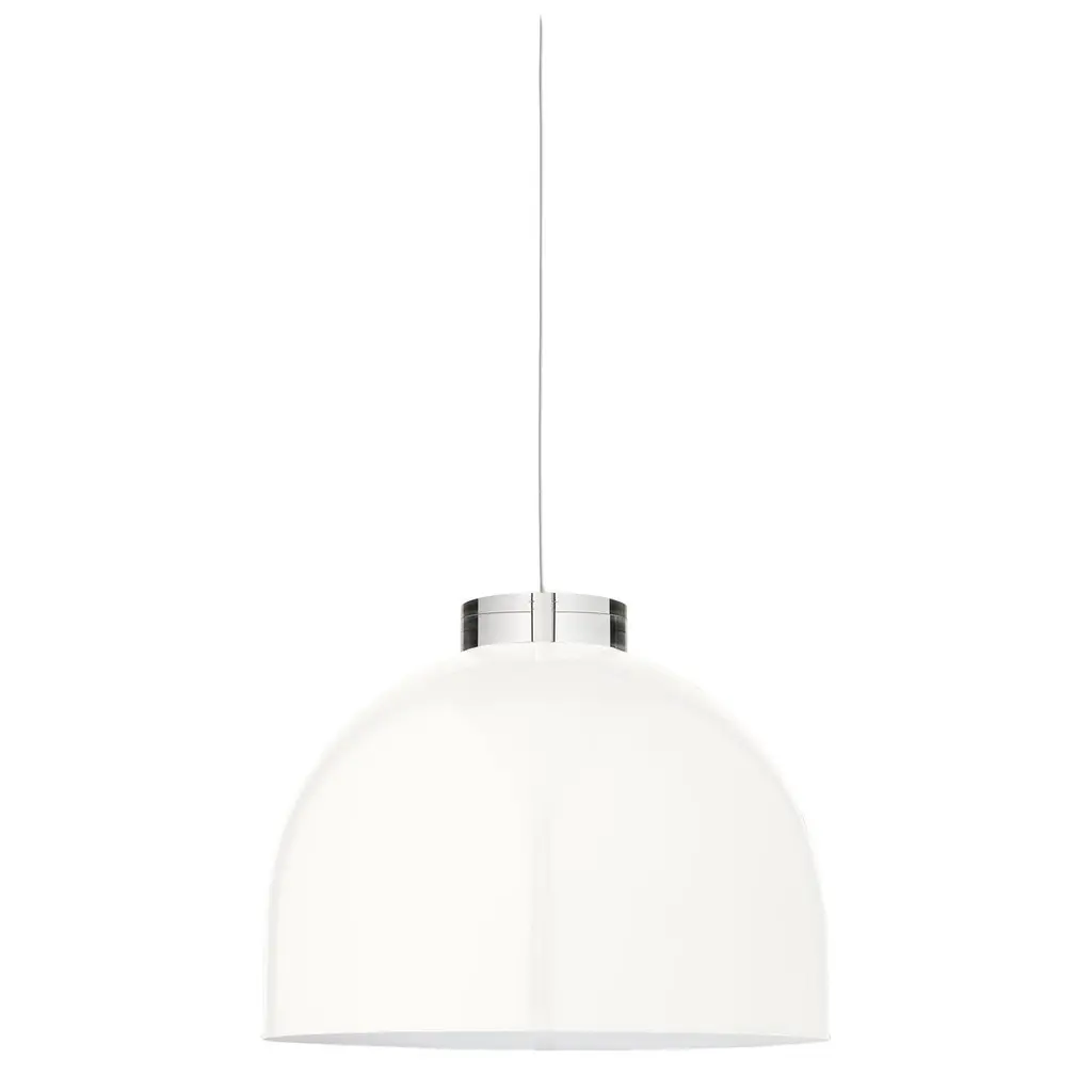 Large white round pendant lampDimensions: Diameter 45 x height 36 cmMaterials: Glass, iron w. Brass plating & powder coating.Details: For all lamps, the recommended light source is E27 max 25W&220/240 voltage. We recommend LED in order to avoid overheating. The lamp can also be used with light dimmers to adjusts brightnessTested with: IP20Compliant with: CEAvailable in gold or black, also in size small. This product is not wired for USA. Does not comply with US Standards.The word LUCEO means to shine in Latin. Timeless and sculptural lamps that focus on functionality and beauty. The cool mix of glass and metal gives a playful expression – enhancing the transparency of the glass and the strength and hardness of the metal. Create the perfect ambiance with the LUCEO lamps and enjoy the subtle light reflection from the glass.