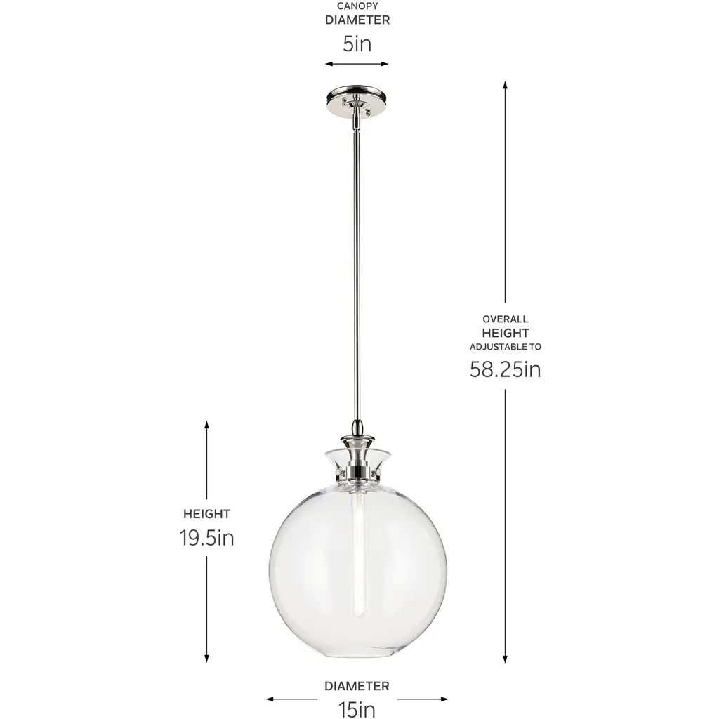 Laria 1 Light Polished Nickel Pendant Ceiling Light In Clear