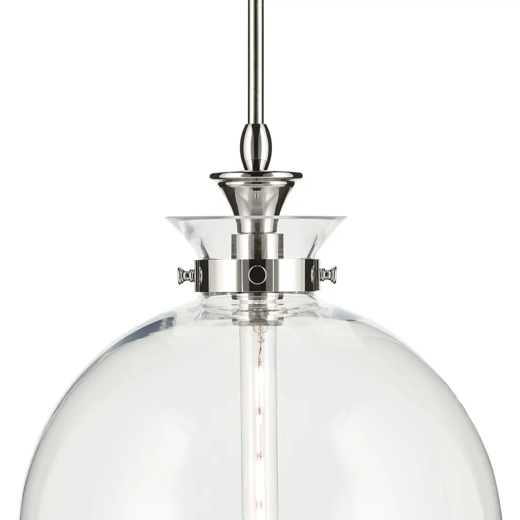 The Laria pendant is equally gorgeous and versatile. Inspired by Korean sachet bags, its classic globe shape nods to the traditional while the subtle detail on the fittings refreshes and enhances its look. This is craftsmanship at its best. The canopy features a soft, subtle curvature for added detail. Clear glass allows the bulb to show through for a truly refined look.