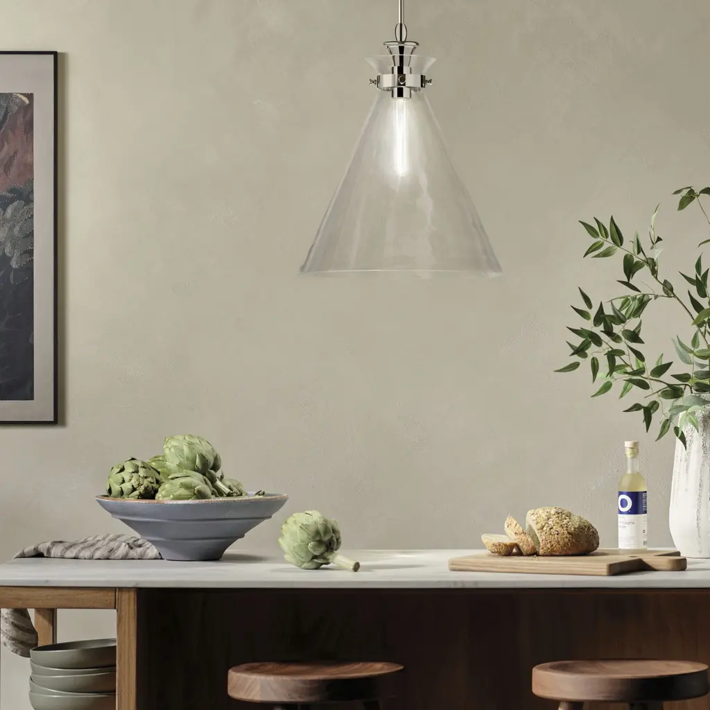 Laria 1 Light Polished Nickel Pendant Ceiling Light In Clear