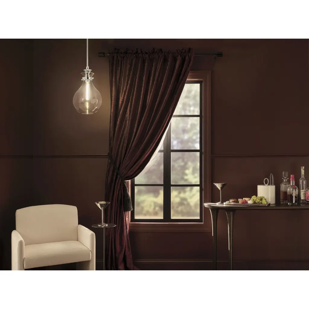 The Laria pendant is equally gorgeous and versatile. Inspired by Korean sachet bags, its classic teardrop shape nods to the traditional while the subtle detail on the fittings refreshes and enhances its look. This is craftsmanship at its best. The canopy features a soft, subtle curvature for added detail. Clear glass allows the bulb to show through for a truly refined look.