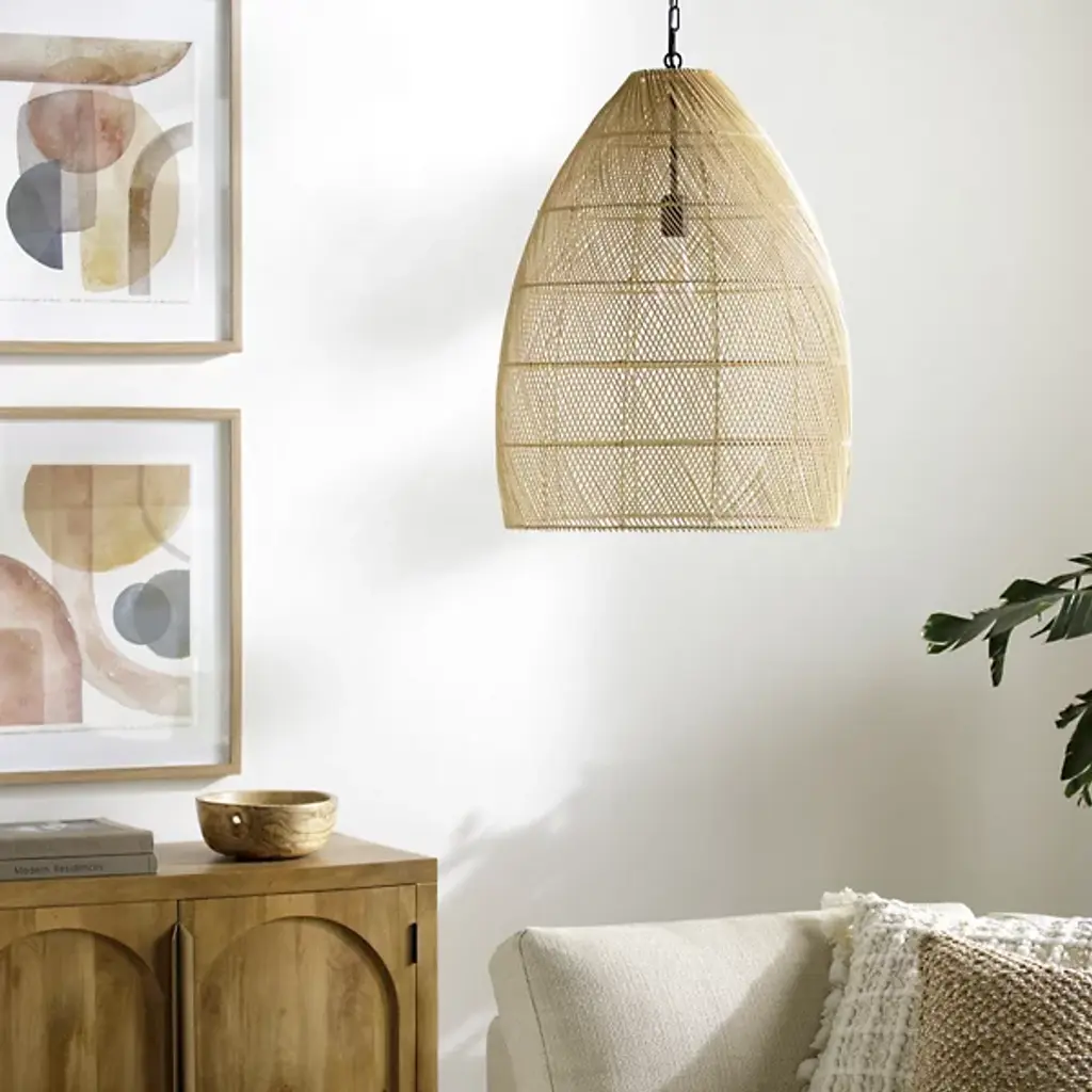 The Larimar Pendant from Surya uses rattan in an unexpected way. The woven rattan creates a network of shadows and light when illuminated, turning a simple pendant into something more interesting. Perfect for hanging above dining tables where conversations flow, in entryways to welcome guests with warmth, or over kitchen islands where you prepare meals each day, this suspension directs illumination exactly where you need it most. Its simple on/off socket switch means you won't waste time figuring out complicated controls, while the pendant's organic texture brings a necessary softness to industrial and rustic interiors.