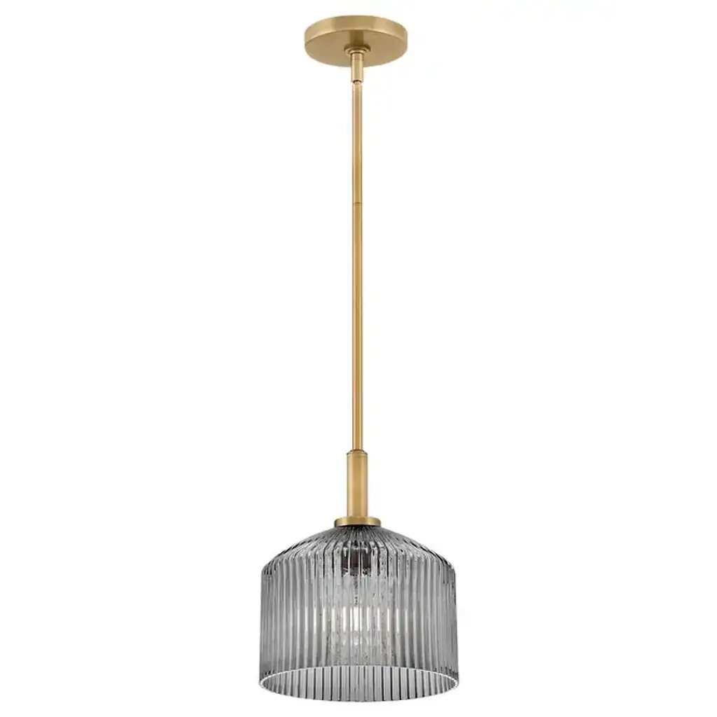 Lark 83727 Lisette 1 Light 9" Wide Mini Pendant With Ribbed Glass - Lacquered Brass / Rose