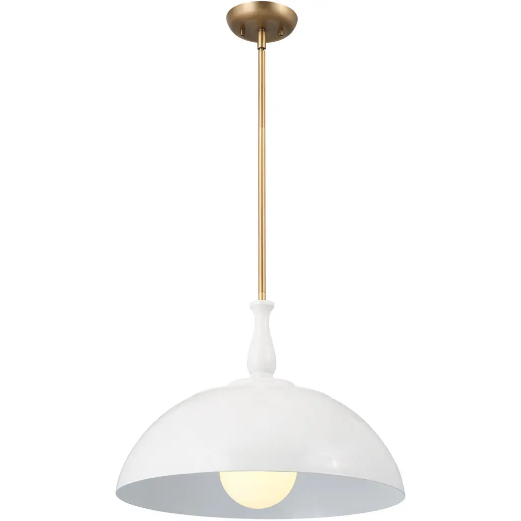 Make a power move by adding Milo to your design mix. The hallmark of this classic pendant is a sleek metal shade that’s both modern and sophisticated, thanks to a curated collection of chic finishes and delicate Lacquered Brass details. Material: Steel, Finish Color: Lacquered Brass/Sage Green, Width: 16", Height: 7", Length: 16", Lamping Type: LED, Number Of Bulbs: 1, Wattage: 12 Watts, Dimmable: Yes, Moisture Rating: Dry Rated