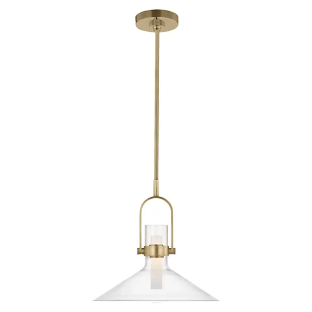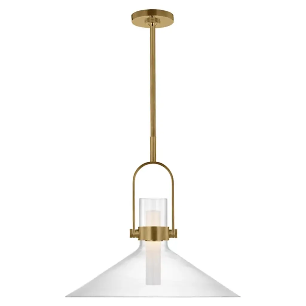 The Larkin Empire LED Pendant from Visual Comfort Signature epitomizes the harmonious blend of classic aesthetics and modern design. Crafted from high-quality brass and glass, this pendant showcases Fowler's design expertise. The enduring construction and meticulous attention to detail ensure both longevity and style. Whether illuminating your kitchen, dining area, or entryway, this pendant adds a touch of sophistication and grace to your space, making it a testament to strong design.