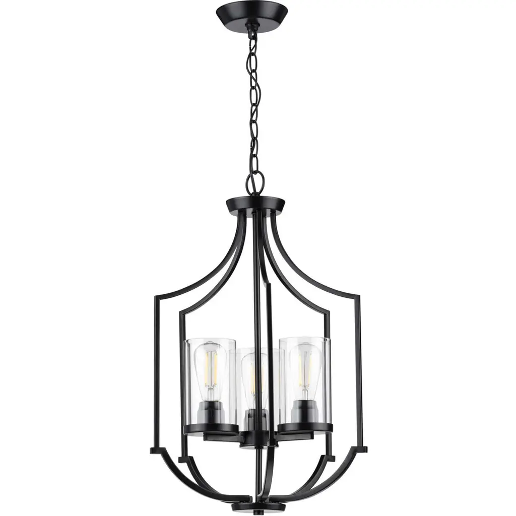 Manifest a swoon-worthy lighting experience with the stunning blend of the modern and traditional styles in this one-of-a-kind Lassiter Collection Three-Light Matte Black Foyer. Square tubing with clean, sharp angles is coated in a beautiful matte black finish that demands your attention. Striking vintage light sockets boast their bold yet simple demeanor as they hold clear glass shades to complete this statement-making light fixture.