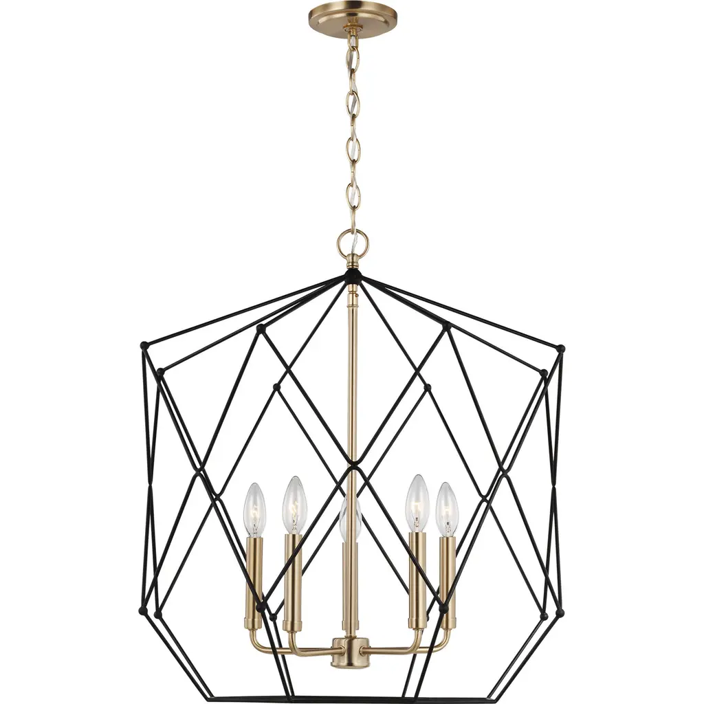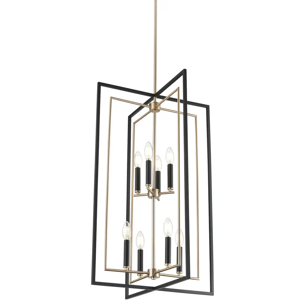 The Laszlo 8-Light Pendant by Hudson Valley Lighting commands your attention with its stunning exhibition of strong lines and abrupt angles. The open metal frame weaves in many different directions around a stunning, industrial-inspired candelabra, providing a unique optical effect from every vantage point. The exposed lamping complements the natural warmth of the surrounding metal, creating a pleasant, even ambiance that can really set the mood.