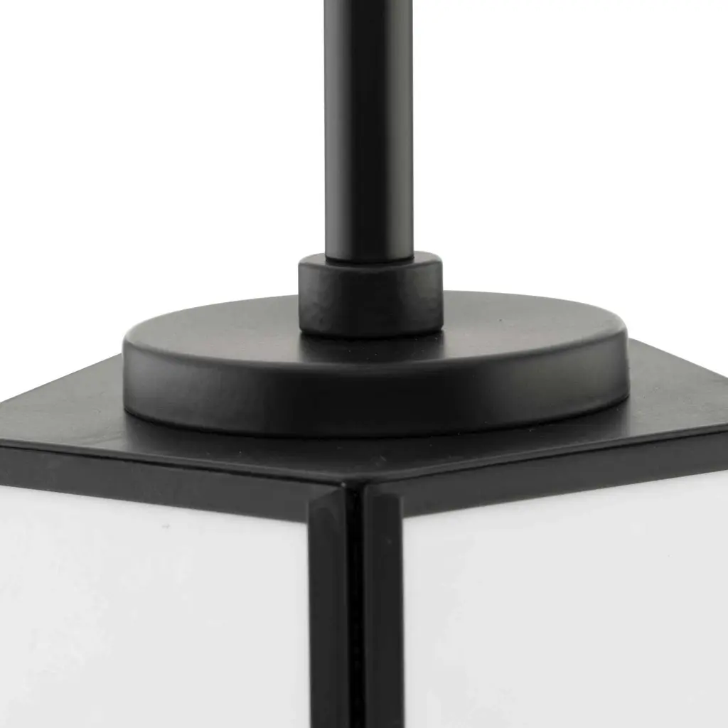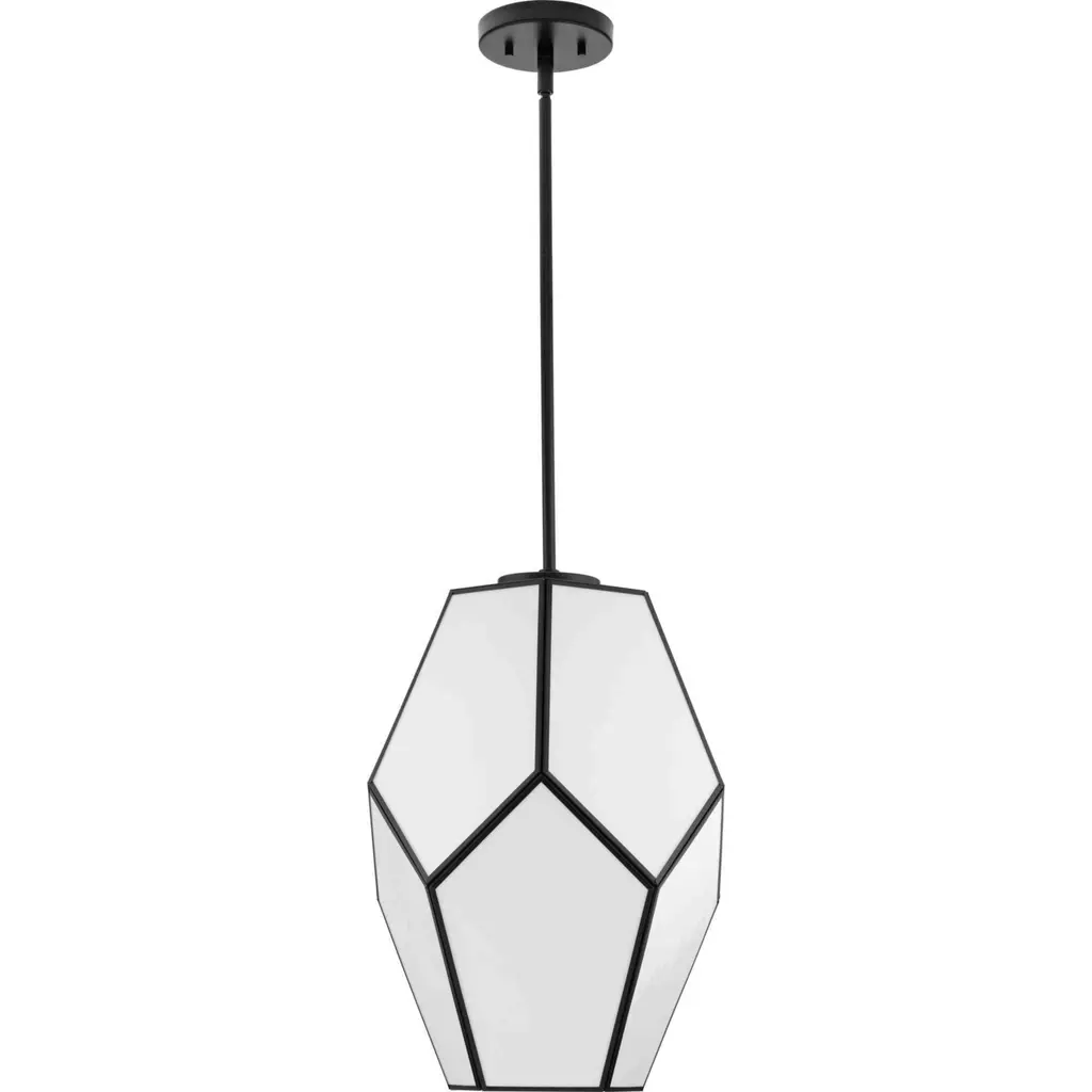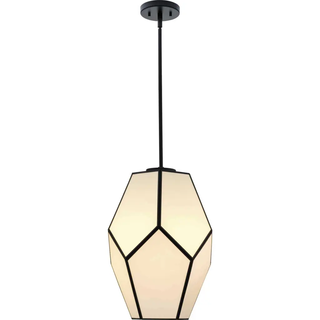 Charmingly distinctive, the Latham Collection glows from within. The Pendant Light is composed of a geometric framework finished in Matte Black that features an artful array of handmade white art glass. Inspired as a modern expression of an origami lantern, the light delivers striking illumination to spaces below.