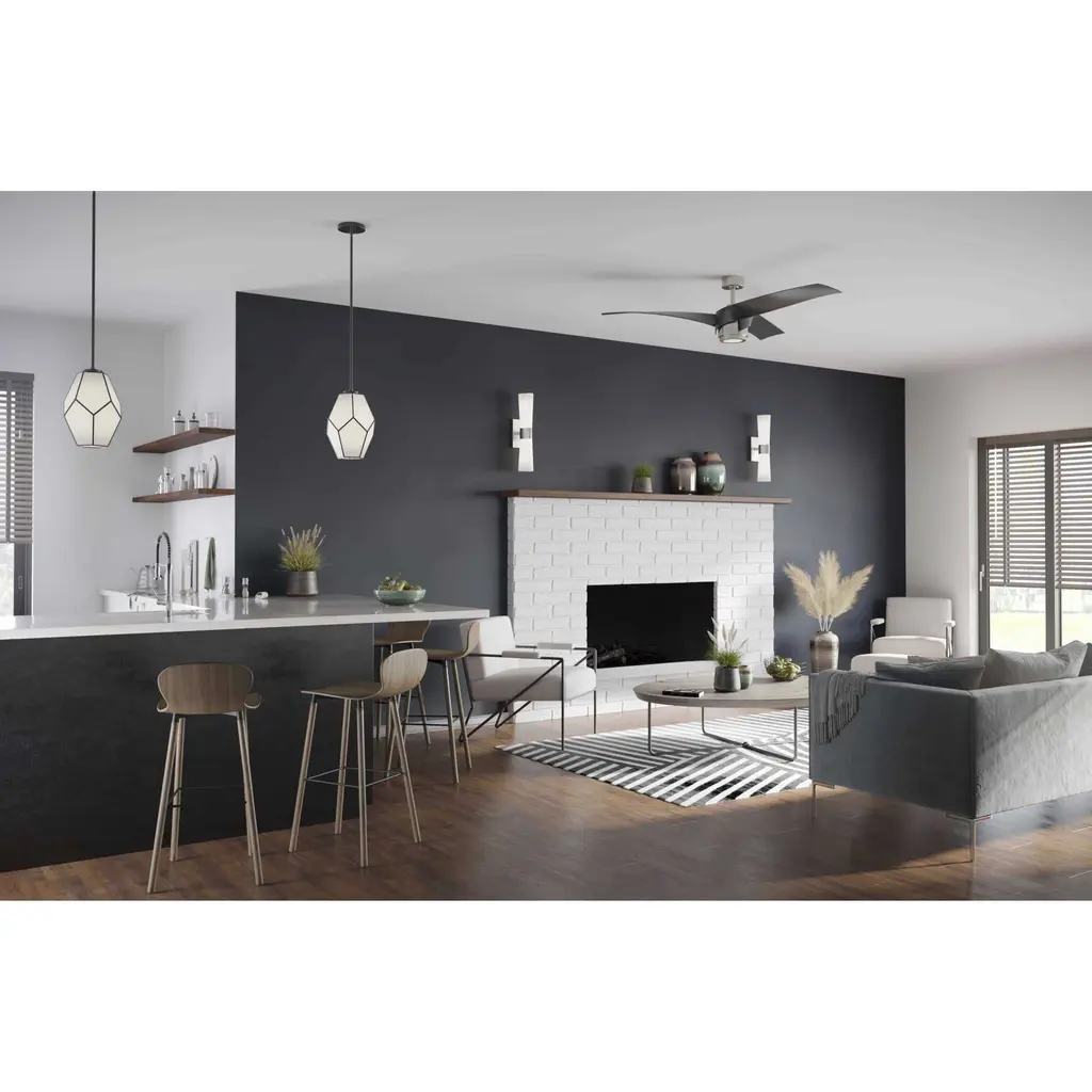 Charmingly distinctive, the Latham Collection glows from within. The Pendant Light is composed of a geometric framework finished in Matte Black that features an artful array of handmade white art glass. Inspired as a modern expression of an origami lantern, the light delivers striking illumination to spaces below.