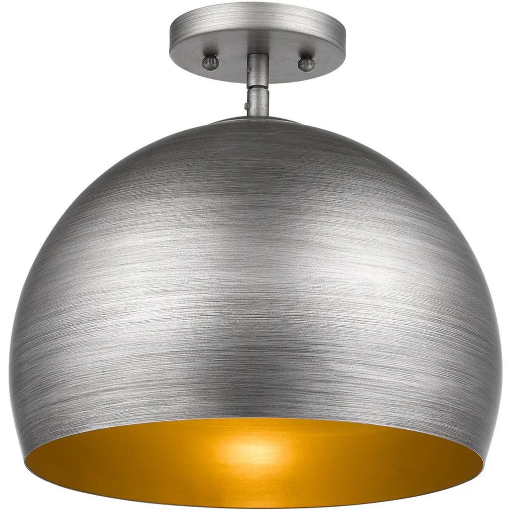 Latitude 1 Light 14 Inch Hand Painted Weathered Pewter W/ Gold Interior Pendant/semi-Flush Ceiling Light