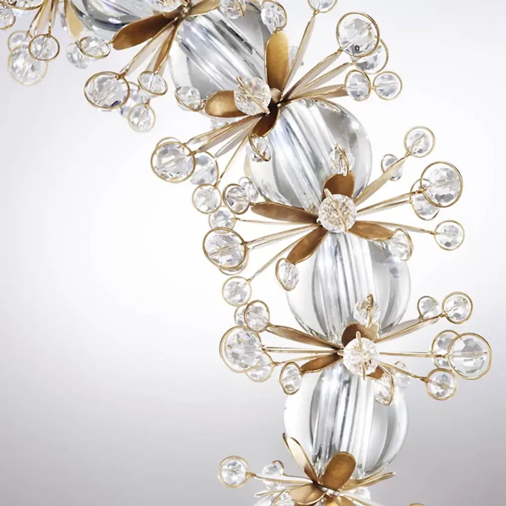 The Laurel LED Pendant from Schonbek Forever is a triumph of mesmerizing hues and scintillation. Crafted from steel and aluminum, it features a glimmering garland of interwoven Schonbek Radiance crystal blossoms and vibrant leaves. Hidden LEDs illuminate the ageless design, casting light upon the crystal ropes accented with sparkling florets that drip gracefully from the garland’s edge. The pendant’s canopy includes a hang-straight swivel for sloped ceilings, while the built-in color temperature adjustability allows for customization.