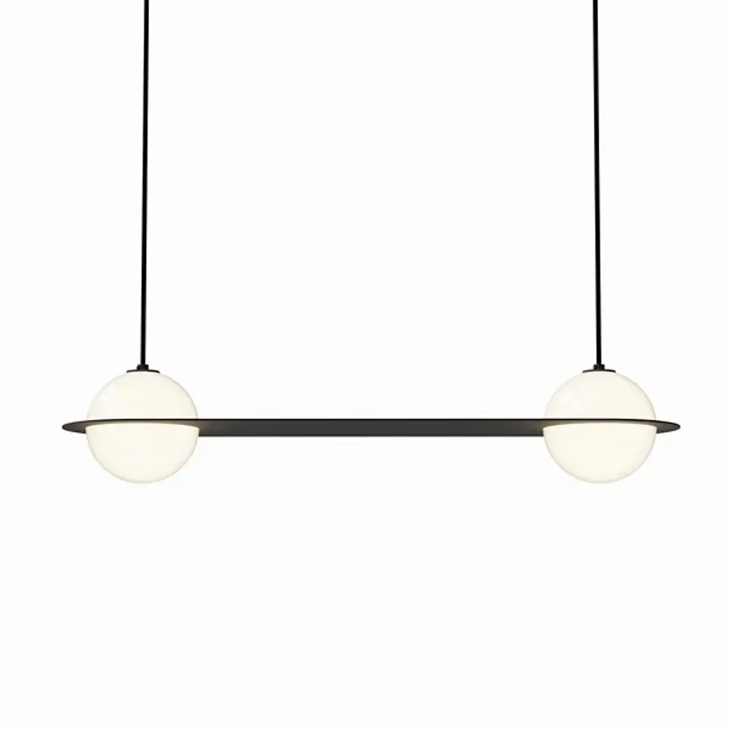 The Laurent 03 Pendant by Lambert & Fils brings design style to your home. A pair of globes composed of fine, hand-blown glass suspends in midair through attachment to an aluminum canopy at your ceiling. A metallic frame surrounds your pendant’s globes, tapering near the globes’ centers, creating a streamlined look. This fixture’s graphic appearance is subtle and takes inspiration from the notion of carving through space. The brightness level of the light produced is easily adjusted when you pair the Laurent 03 Pendant with an ELV dimmer.