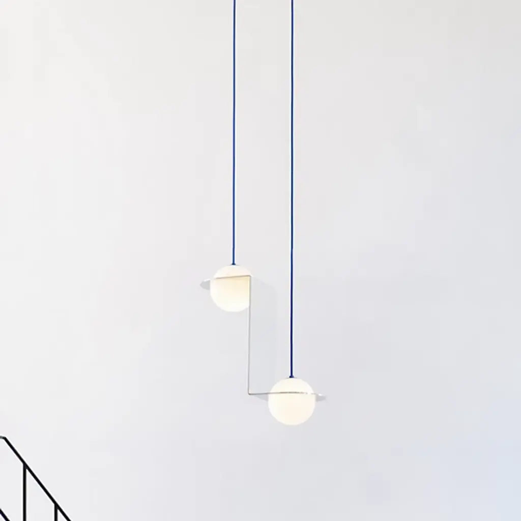 Enliven your decorative arrangement with the Laurent 05 Tall Offset Duo Pendant by Lambert & Fils. This mid-century modern-styled fixture features a geometric design quality that is meant to showcase a linear appearance while remaining voluminous. A pair of hand-blown glass shades is enveloped by the pendant’s aluminum frame. The globes suspend at differing heights, allowing the framework to interconnect in an offset fashion. LED lamps let bright light disperse throughout your environment with ease.