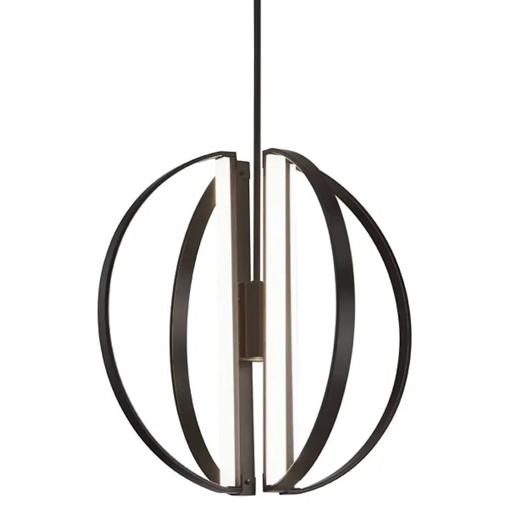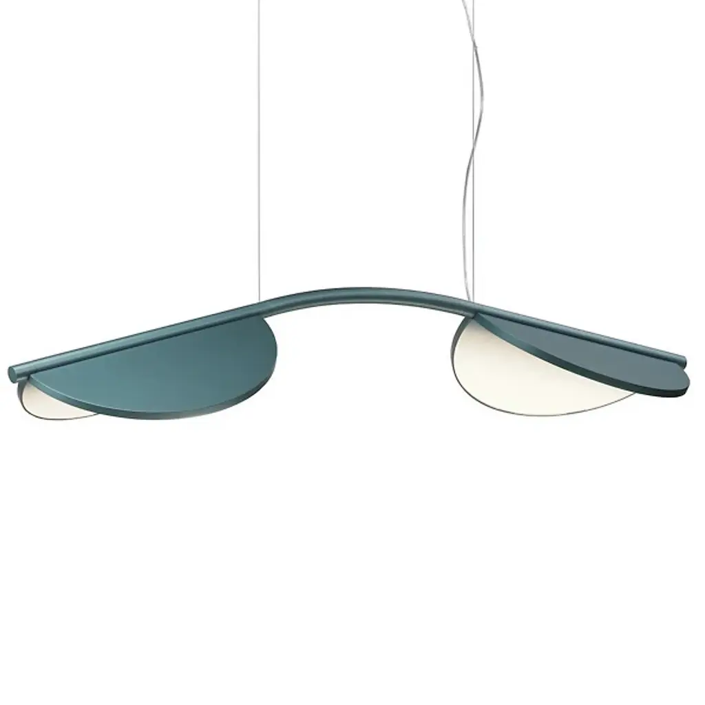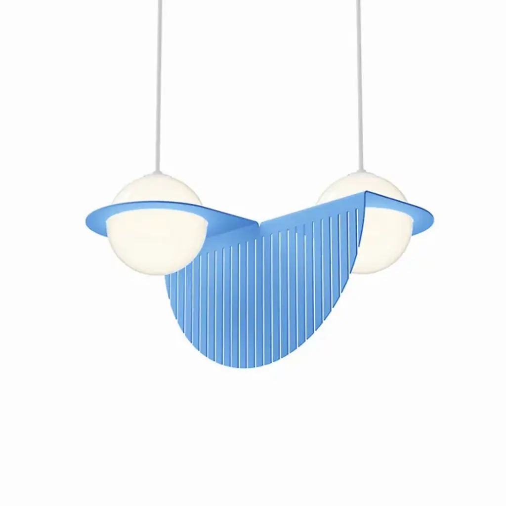 Every viewing angle is satisfied with the flowing sculptural composition of the Laurent 09 Semicircle Duo Pendant from Lambert & Fils, a piece exploring the relationship of the circle and sphere. The pendant’s clean yet mesmerizing outlines speak to the Lambert & Fils’ humility meets complexity design motto. This piece enters the space with a pair of fine cords that suggest a floating look. The handblown glass globes pop visually as they are cradled by 2-dimensional metal accents. These accents meet at the center, where a semi-circle produces an intriguing linear pattern. This pattern receives a golden glaze from the globes’ mood-setting glow.