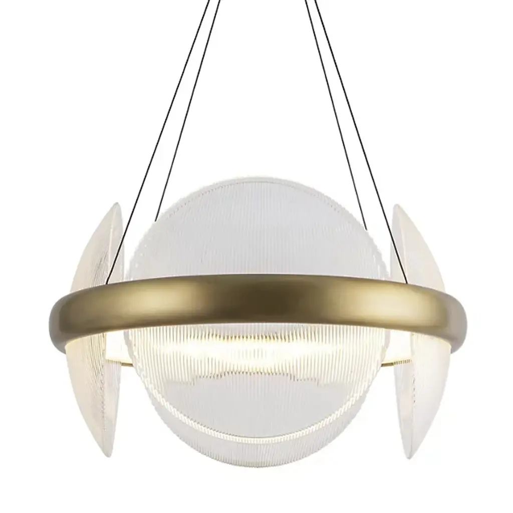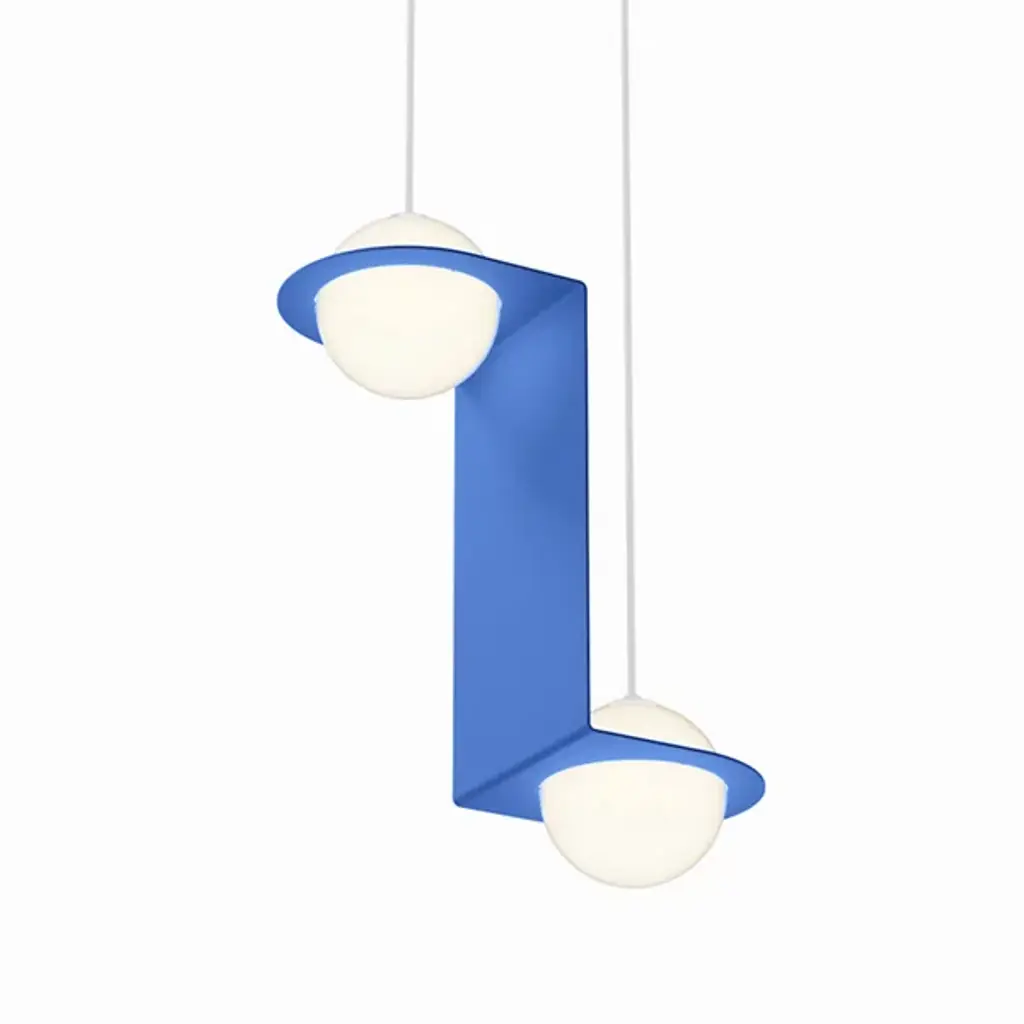 Every viewing angle is satisfied with the flowing sculptural composition of the Laurent 09 Semicircle Duo Pendant from Lambert & Fils, a piece exploring the relationship of the circle and sphere. The pendant’s clean yet mesmerizing outlines speak to the Lambert & Fils’ humility meets complexity design motto. This piece enters the space with a pair of fine cords that suggest a floating look. The handblown glass globes pop visually as they are cradled by 2-dimensional metal accents. These accents meet at the center, where a semi-circle produces an intriguing linear pattern. This pattern receives a golden glaze from the globes’ mood-setting glow.