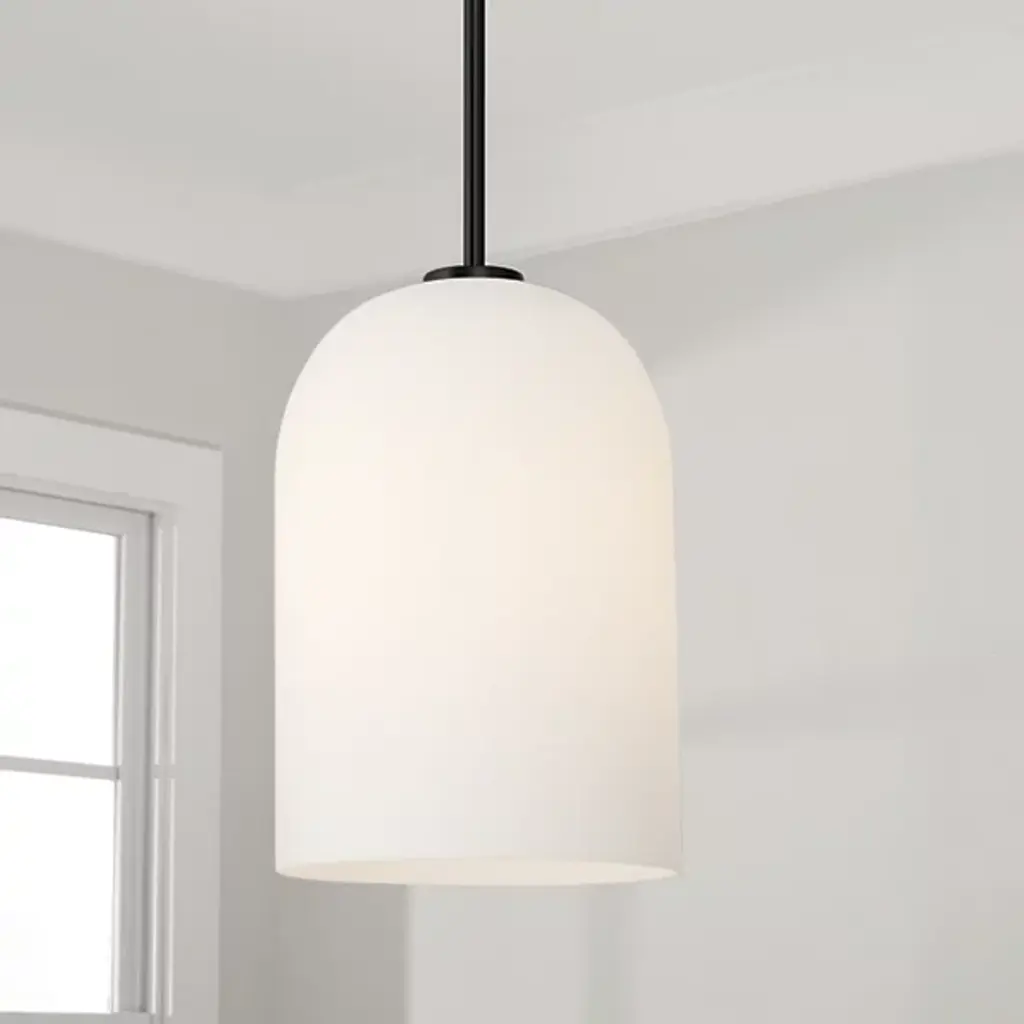 Add warm refinement to interior spaces with the transitional elegance of the Lawson Pendant from Capital Lighting. This ethereal fusion of metal and glass descends gracefully from a disc-shaped canopy, delivering powerful damp-listed lighting encased within a rounded shade of translucent glass. The fixture exhibits a refined simplicity, featuring an elongated dome shade that diffuses bright light into a gentle radiance. Each open base adds a focused spot of downlight, creating a harmonious play of pleasingly layered illumination, uniting timeless design with functional lighting.