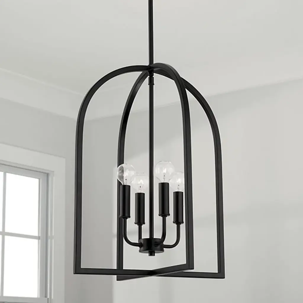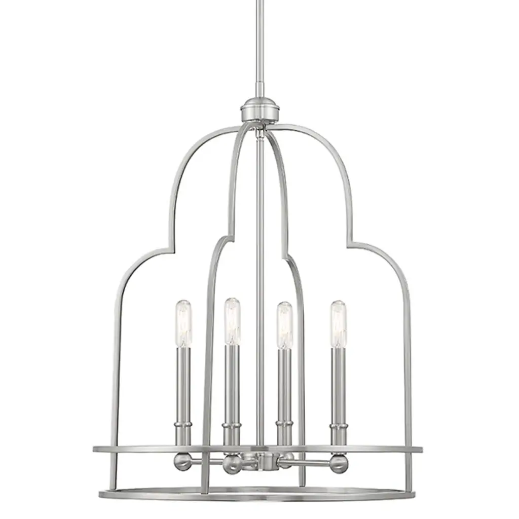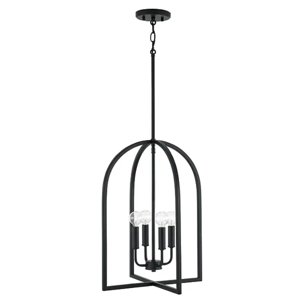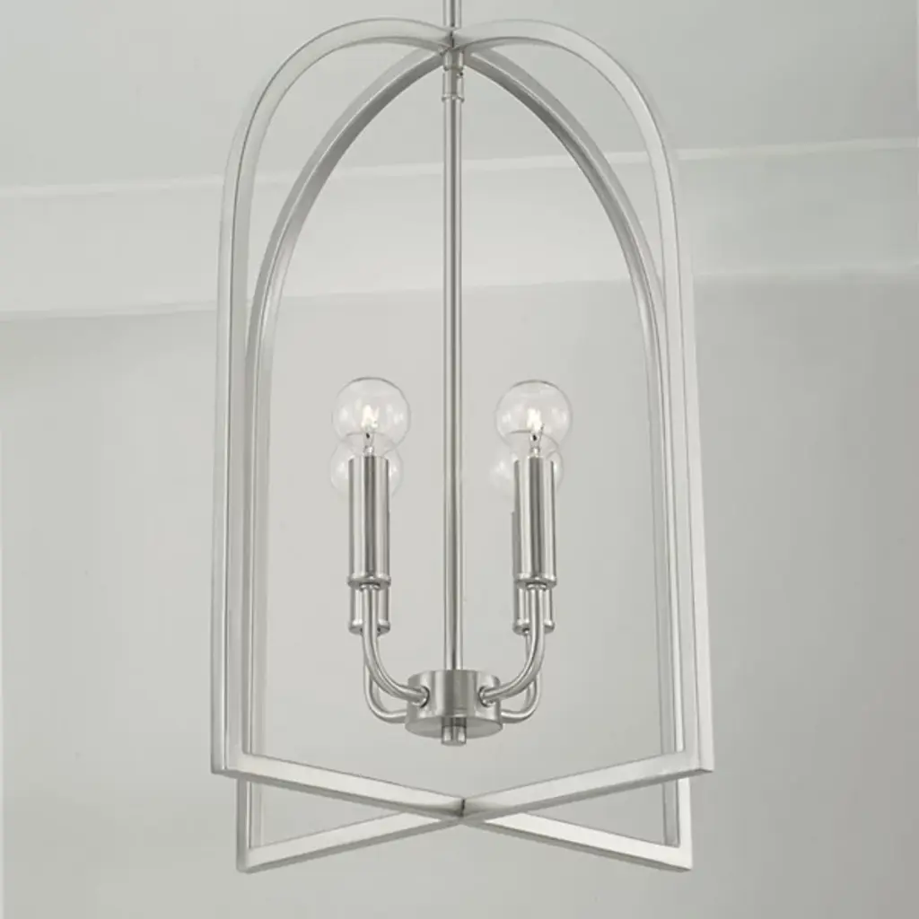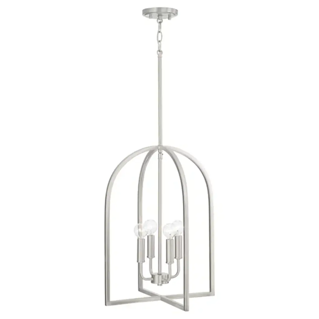 The Lawson 4-Light Pendant from Capital Lighting blends transitional style elements into arched forms, making it an intriguing addition to any space. This pendant is constructed from durable metal, with an expressive design that plays well with various decor styles. A short chain and central stem descend from a stepped disc canopy, supporting upright, open lamping within a gracefully curved metal frame that adds a touch of elegance to any room, creating a welcoming ambiance with its charming curves and shadowed accents.