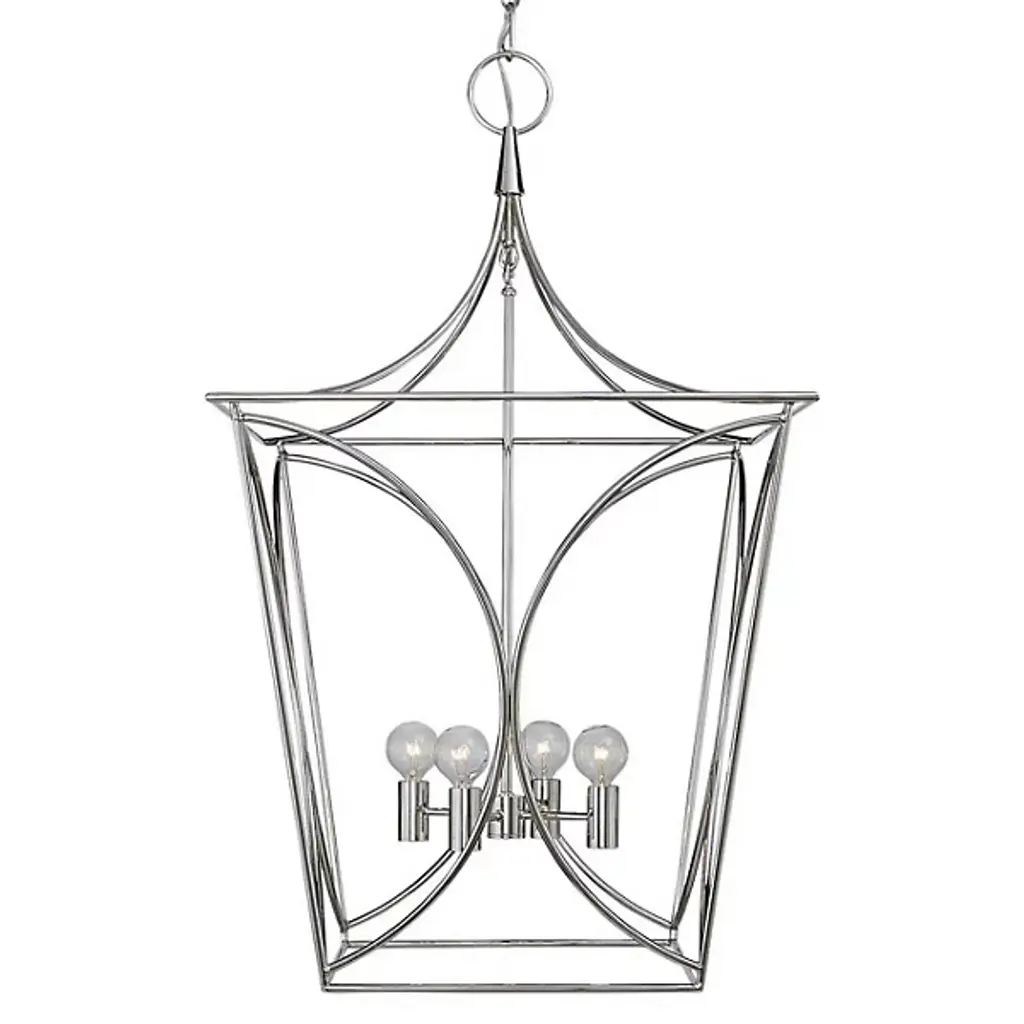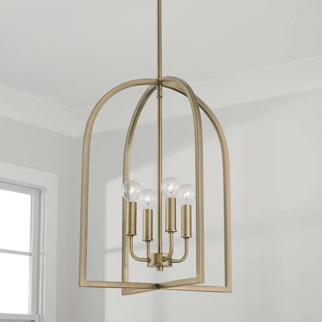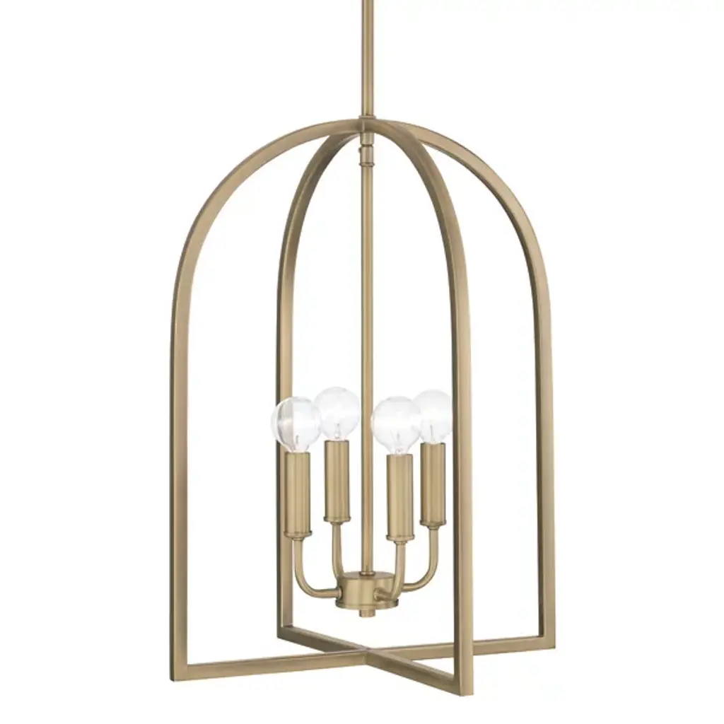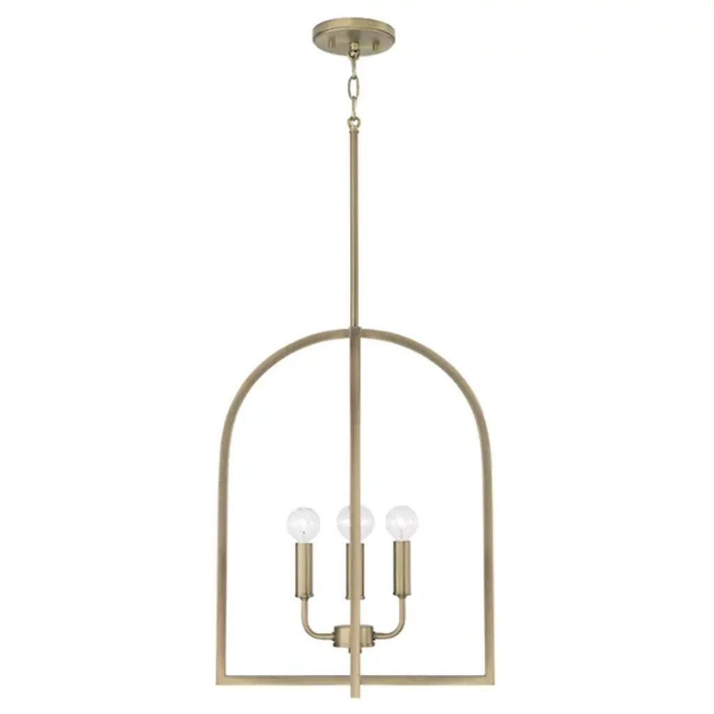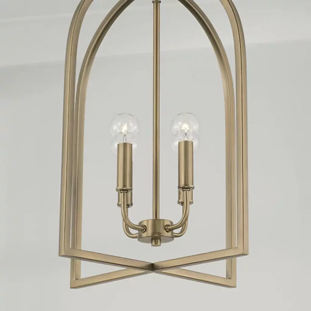 The Lawson 4-Light Pendant from Capital Lighting blends transitional style elements into arched forms, making it an intriguing addition to any space. This pendant is constructed from durable metal, with an expressive design that plays well with various decor styles. A short chain and central stem descend from a stepped disc canopy, supporting upright, open lamping within a gracefully curved metal frame that adds a touch of elegance to any room, creating a welcoming ambiance with its charming curves and shadowed accents.