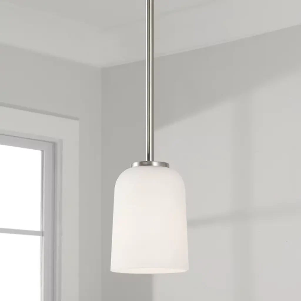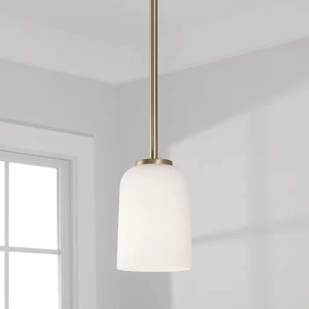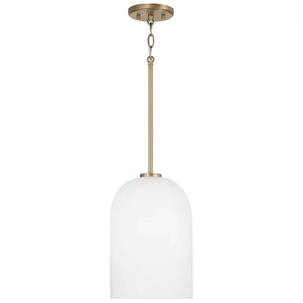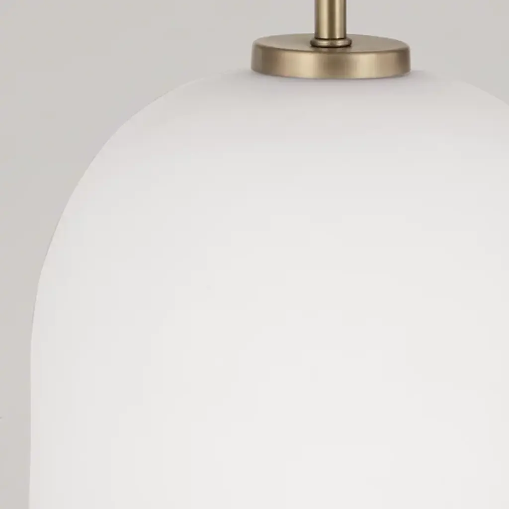 Add warm refinement to interior spaces with the transitional elegance of the Lawson Pendant from Capital Lighting. This ethereal fusion of metal and glass descends gracefully from a disc-shaped canopy, delivering powerful damp-listed lighting encased within a rounded shade of translucent glass. The fixture exhibits a refined simplicity, featuring an elongated dome shade that diffuses bright light into a gentle radiance. Each open base adds a focused spot of downlight, creating a harmonious play of pleasingly layered illumination, uniting timeless design with functional lighting.