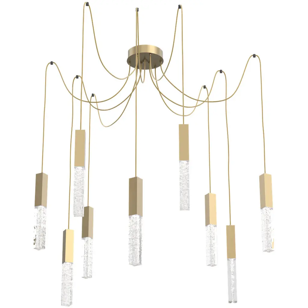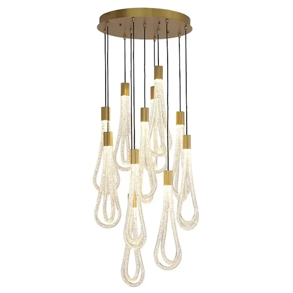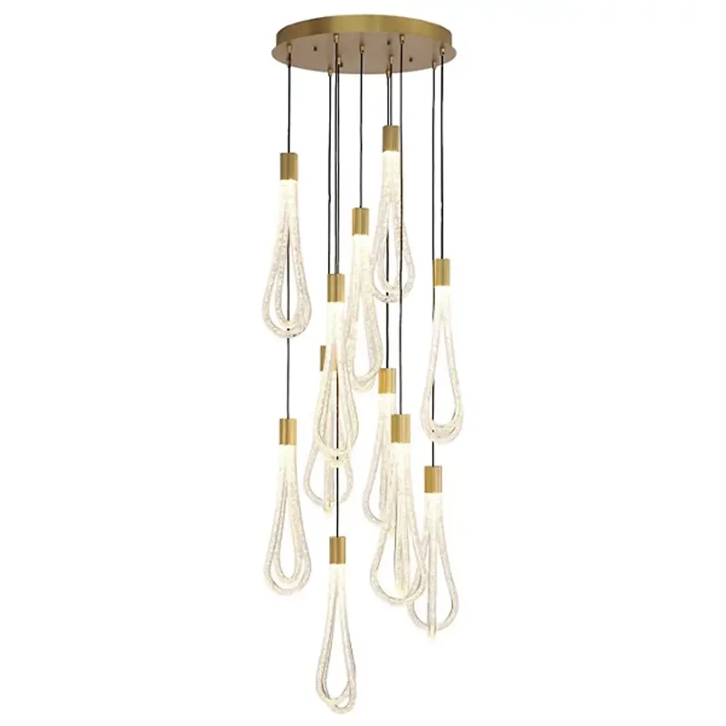 The Layered Raindrop LED Multi-Light Pendant from Global Views features suspended loops of softly glowing, dimmable light to create a dramatic and functional accent for any environment. Each suspended light head features an LED light source that interacts with air bubbles trapped within the shaped acrylic rod, forming a striking focal point. With individual adjustment options, you can design endless configurations to suit your space. The extendable cloth-covered power cords, reaching up to 6 feet, allow for versatile placement above a dining room table or in a stairway entry.