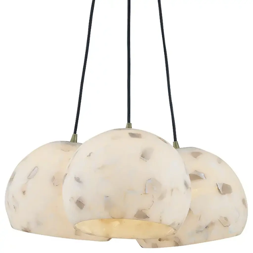 The Lazio 7-Light Multi-Drop Pendant has luminous shades carved from natural alabaster. The veining in the material makes each shade unique because each stone taken from the earth will have its own personality. The shape of the shade and the thinness of the stem on which it dangles are of the simplest in form. This leaves the natural material to shine. The painted silver finish also helps to keep the design light and airy. We offer the Lazio in a number of different configurations with multiple shades.