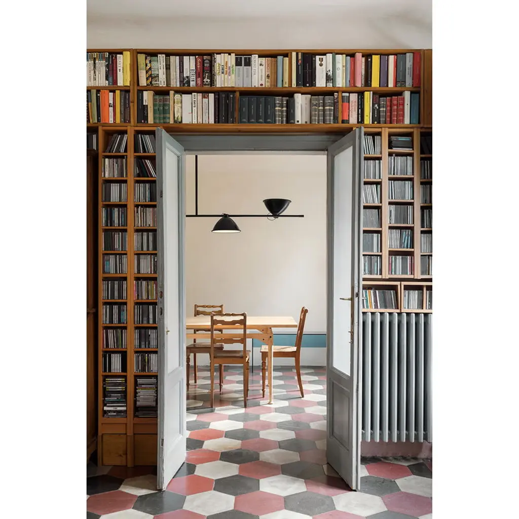 Nemo Lighting’s LBB01 pendant light combines direct and indirect lighting with a touch of 1950s Brazil. Designed in 1950 by Italian-Brazilian architect Lina Bo Bardi for her own home, Casa de Vidro in São Paulo, the LBB01 pendant lamp plays with geometric lines. The light is built around a height-adjustable telescopic arm, supporting a rod with four shades, each of which can be freely rotated 360 degrees. Evoking the timeless atmosphere of the 1950s, the LBB01 pendant light is perfect for illuminating dining areas, kitchen islands or meeting rooms. The adjustable shades allow you to easily customize the balance between direct and indirect light to suit your needs.