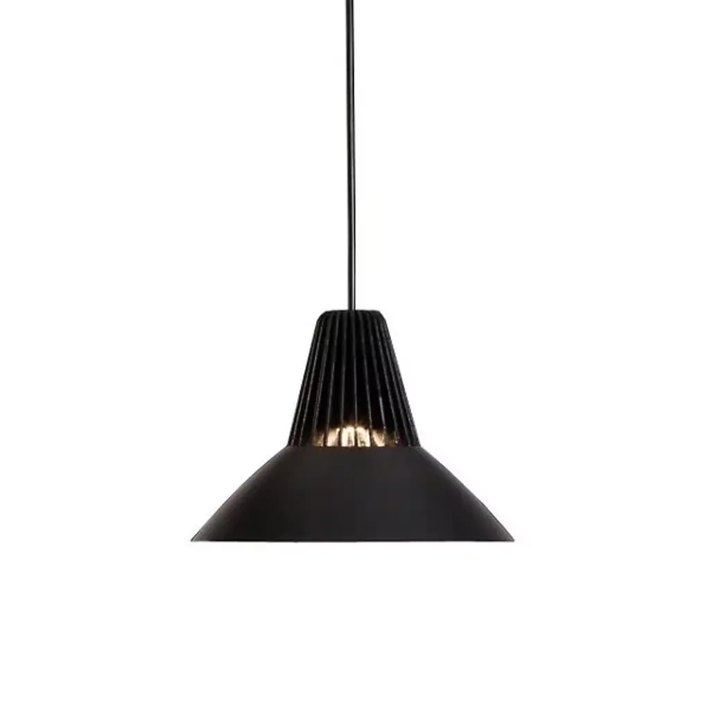 Simple and elegant, the Le Gine C4 Mini Pendant from Antonangeli is an expressive and tasteful piece designed by Sebastiano Tosi in 2017. A smooth metal shade angles up, topped with an open housing of thin metal lines for a clean and sharp silhouette that reveals the single bulb within. The light from this piece shines upward and downward, bringing a wide and full layer of illumination to the space.