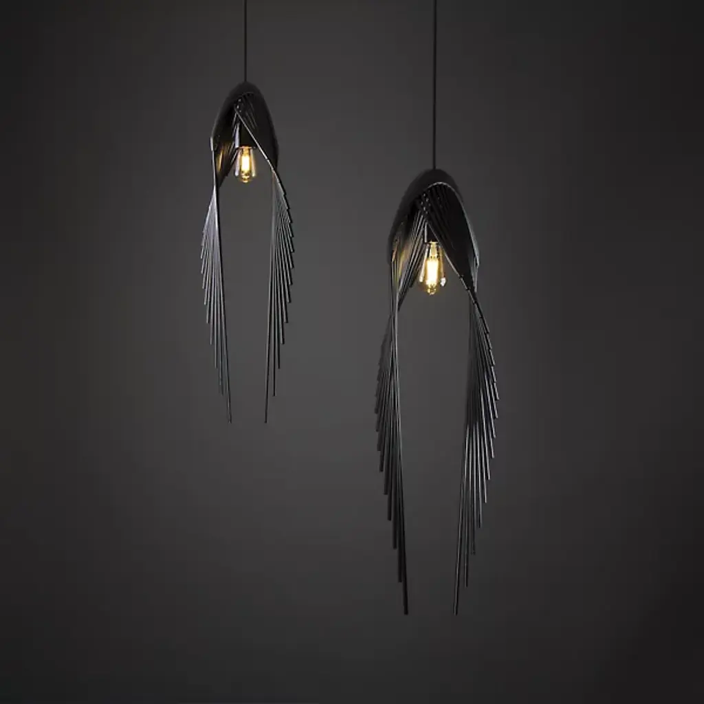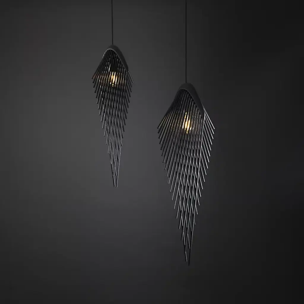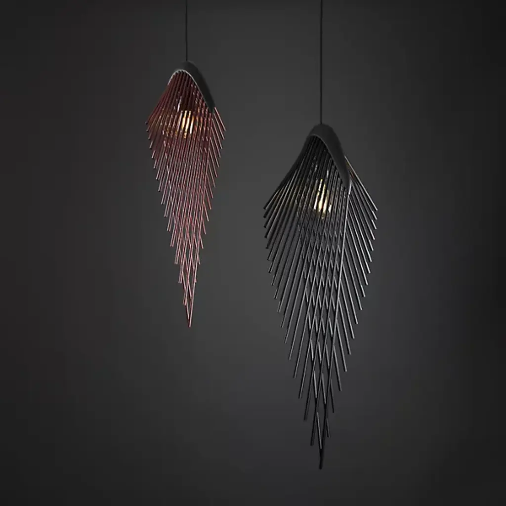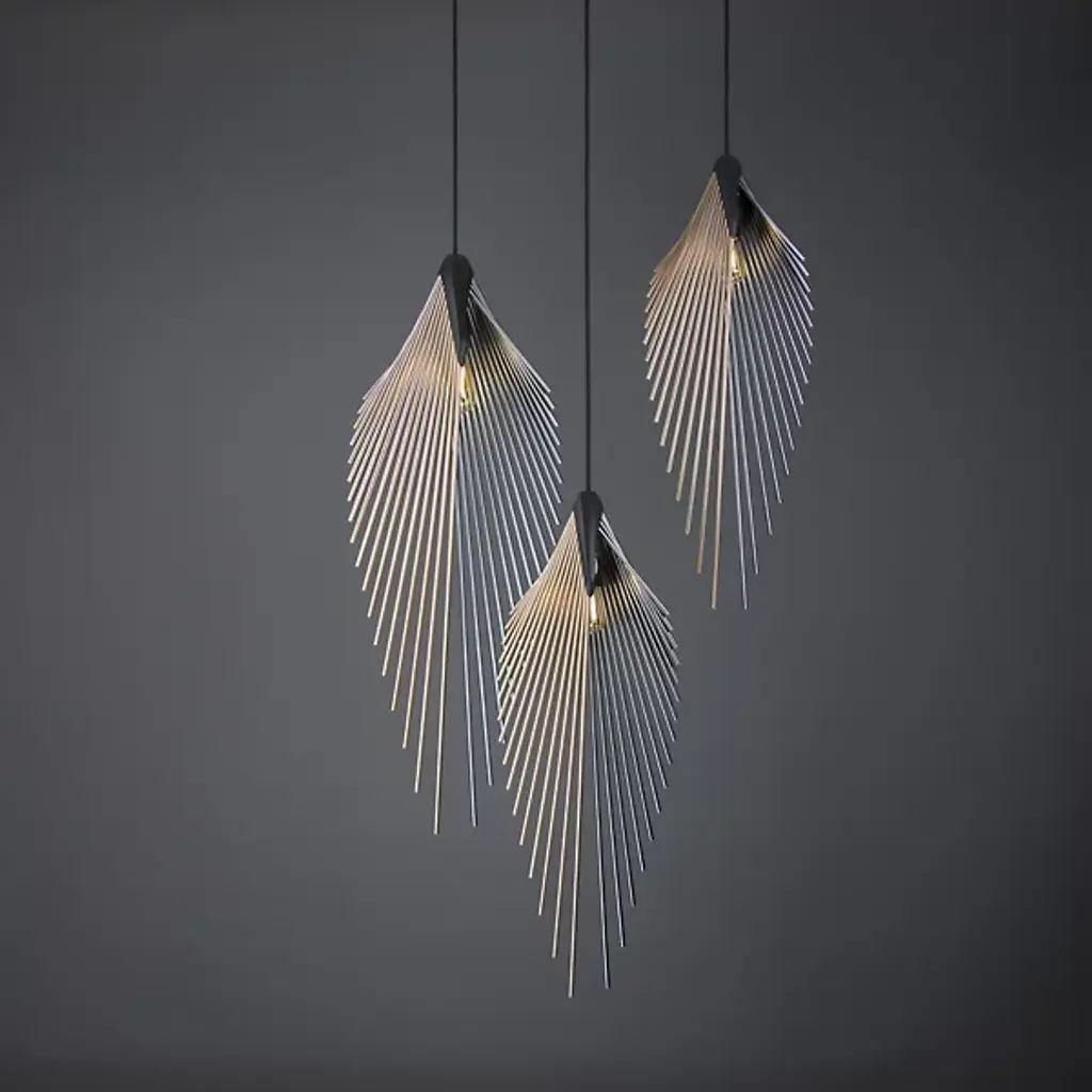 Exquisitely composed and beautiful from every angle. The Leaf Pendant is a contemporary piece of lighting design created by Daniel Mato for Loomiosa. Inspired by his travels in Asia, the silhouette of the pendant is meant to evoke an abstract rendition of the lush foliage he encountered. Nature-inspired elements blend with contemporary finishes for a remarkable piece of lighting and design. Place one anywhere that would benefit from the elevated and stylish illumination.