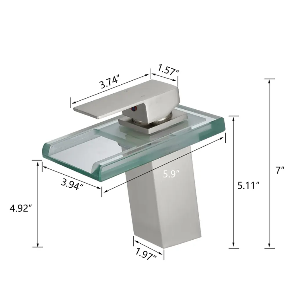 Led Waterfall Bathroom Faucet With 3 Color Changing Light And Single Handle