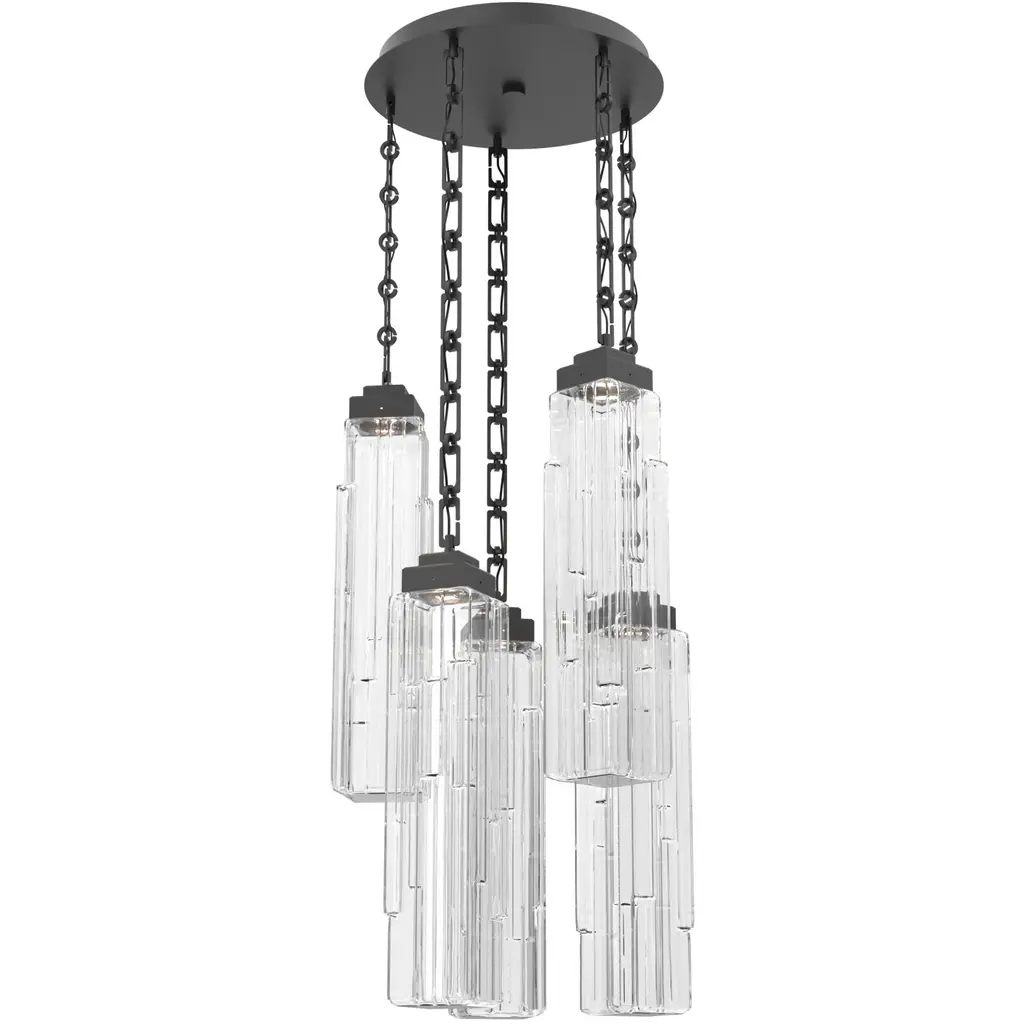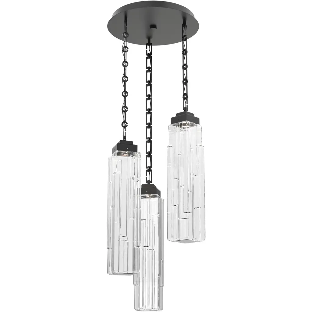 This impressive round multi-pendant chandelier features 3 Ledgestone pendants suspended from a round canopy. Integrated LED illumination dramatically refracts light on surrounding surfaces. Suspension options include cloth-braided cord or handcrafted chain in three vintage-inspired styles.