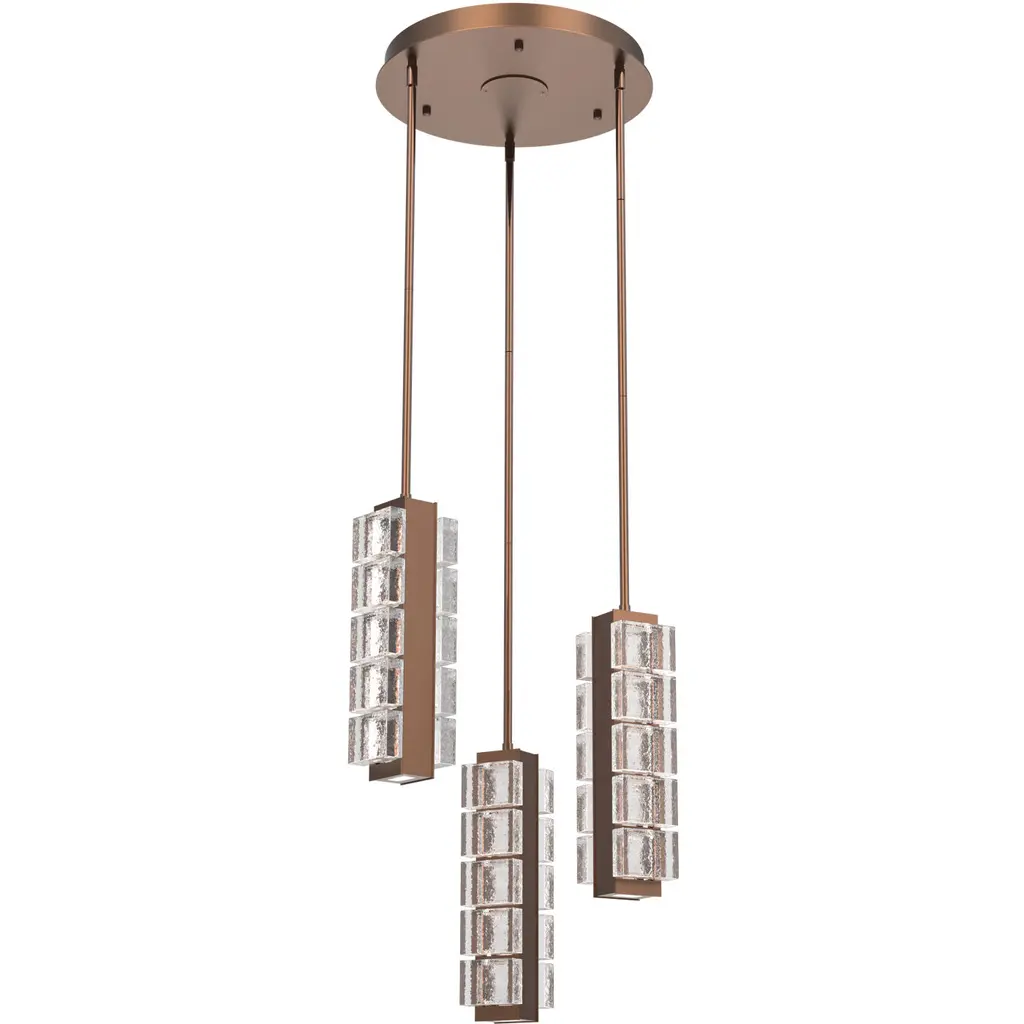 This impressive round multi-pendant chandelier features 5 Ledgestone pendants suspended from a round canopy. Integrated LED illumination dramatically refracts light on surrounding surfaces. Suspension options include cloth-braided cord or handcrafted chain in three vintage-inspired styles.