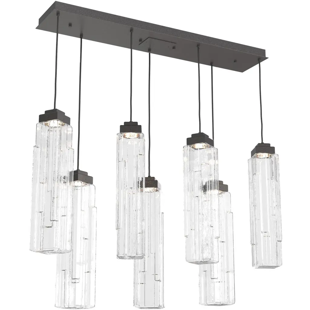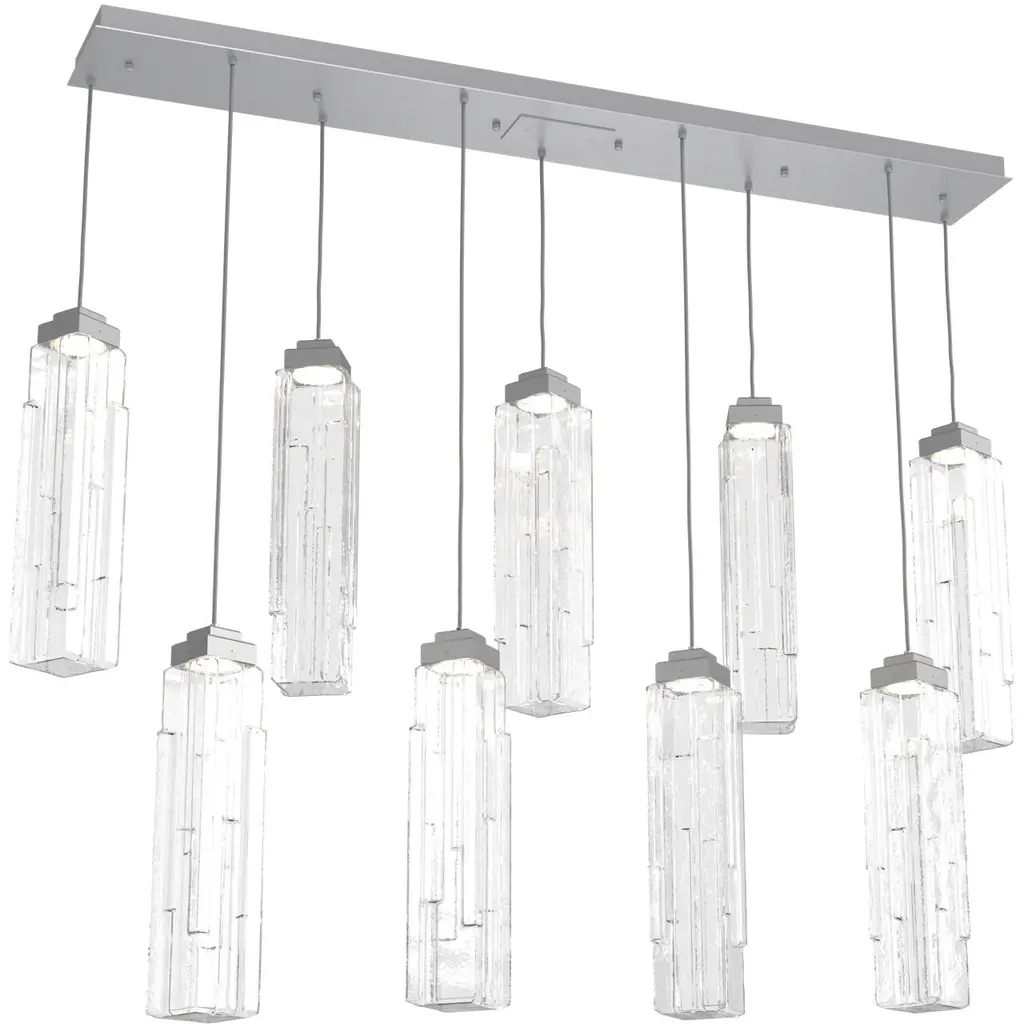Ledgestone Linear Multi-Port -05-Metallic Beige Silver-Ledgestone Blown Glass - Clear-Silver Cloth Braided Cord-LED