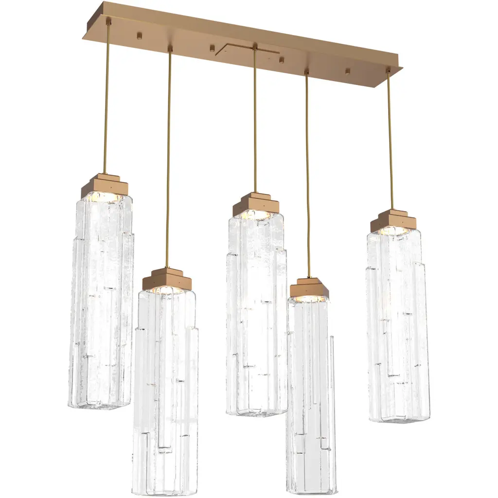 Ledgestone Linear Multi-Pendant-05-Burnished Bronze-Ledgestone Blown Glass - Clear-Cloth Braided Cord-LED 3000K