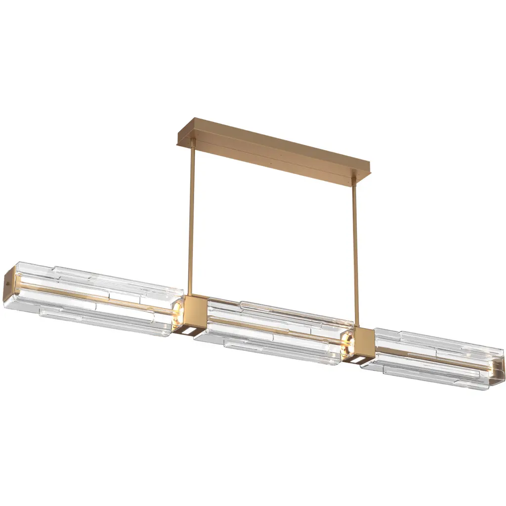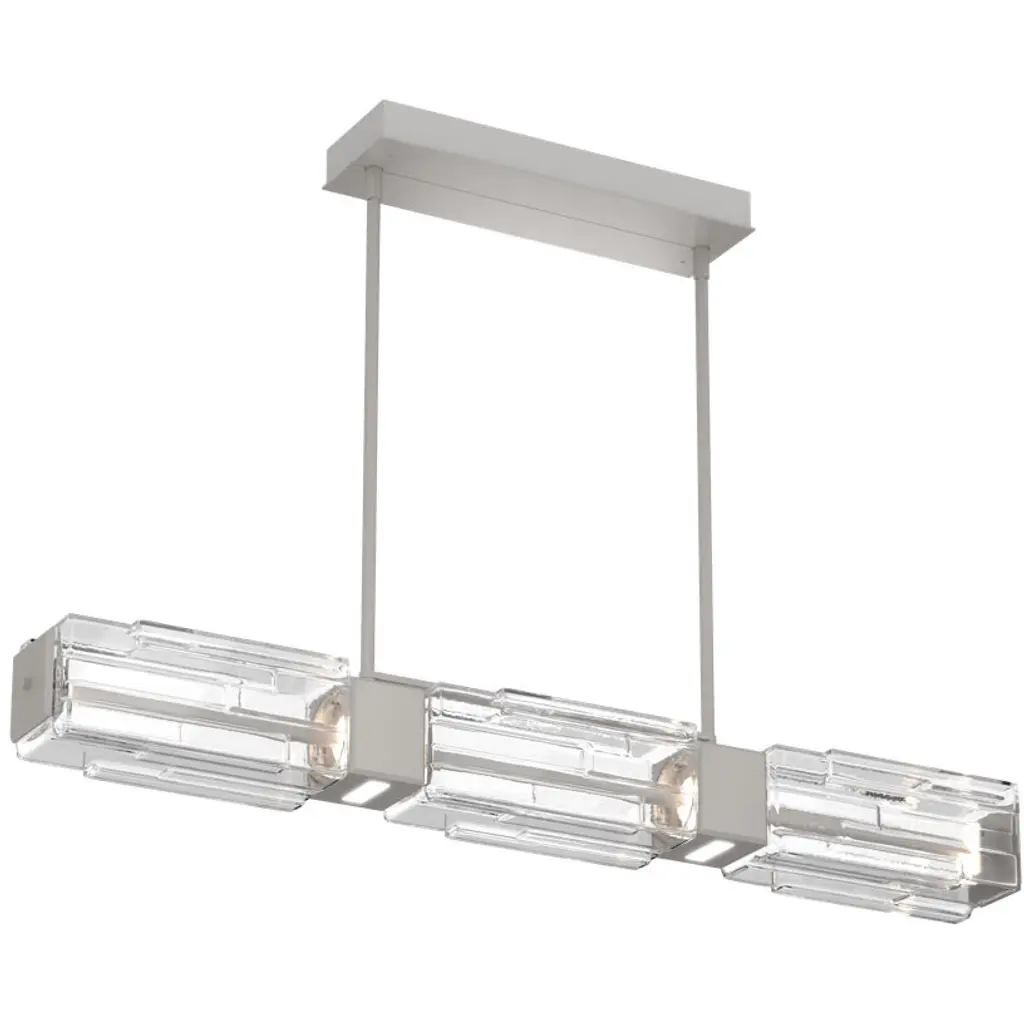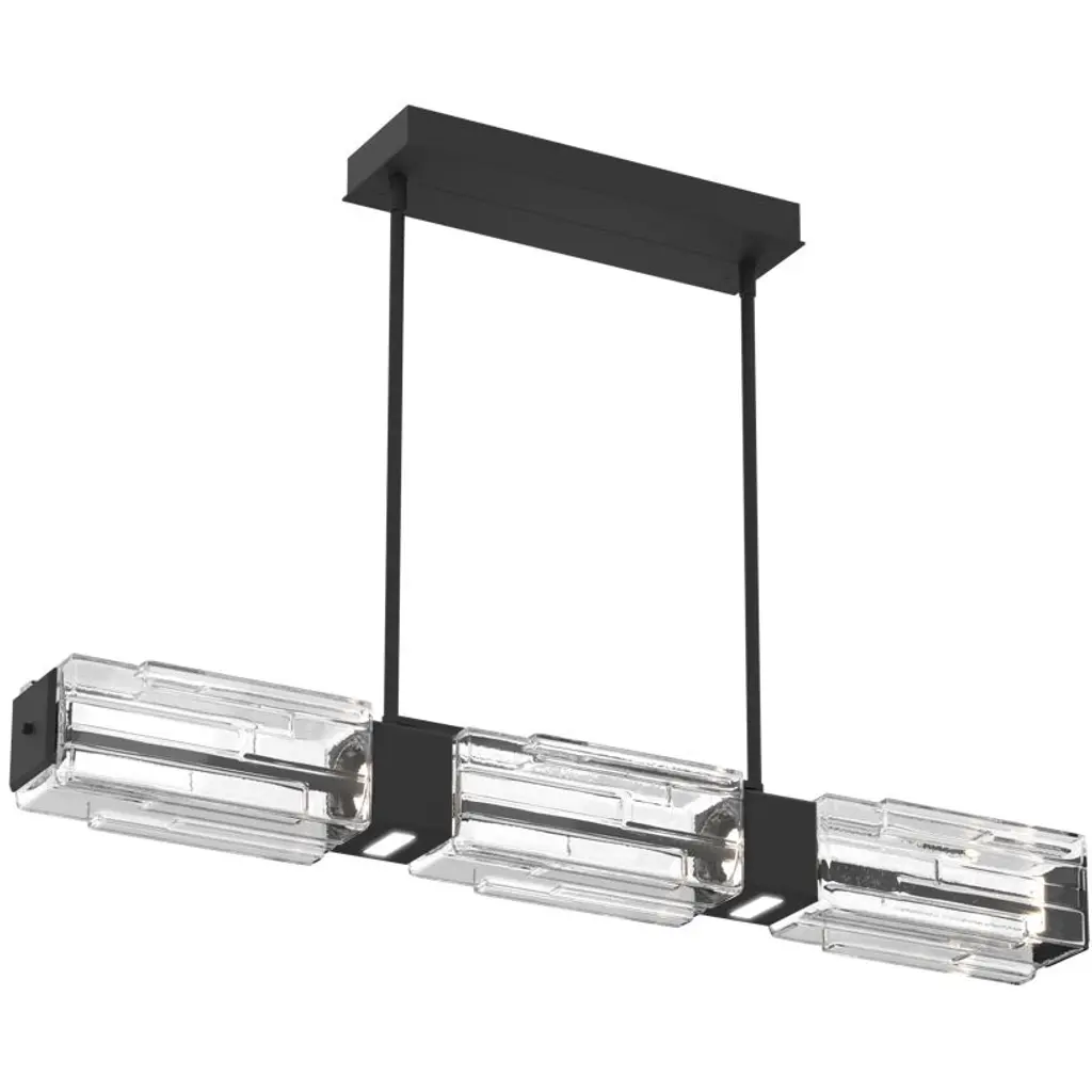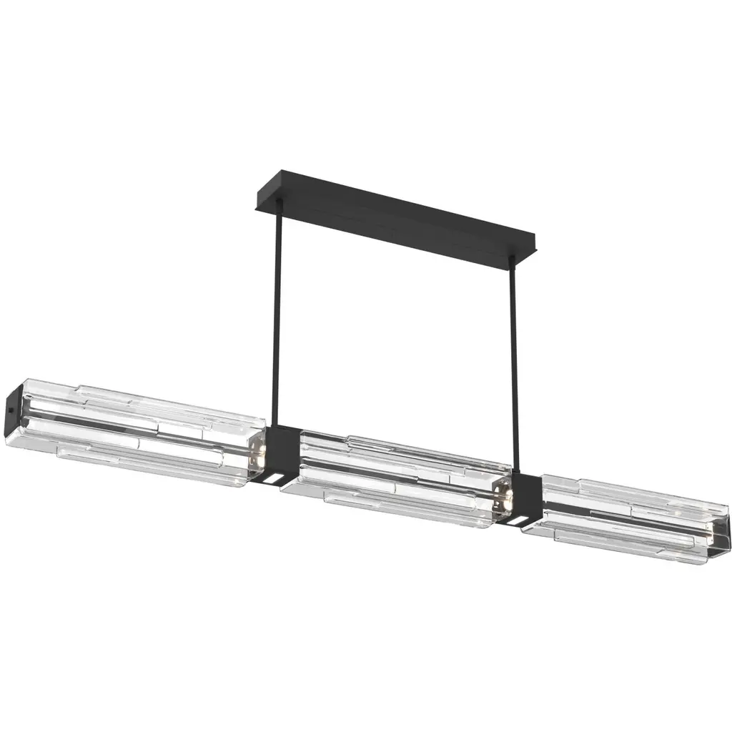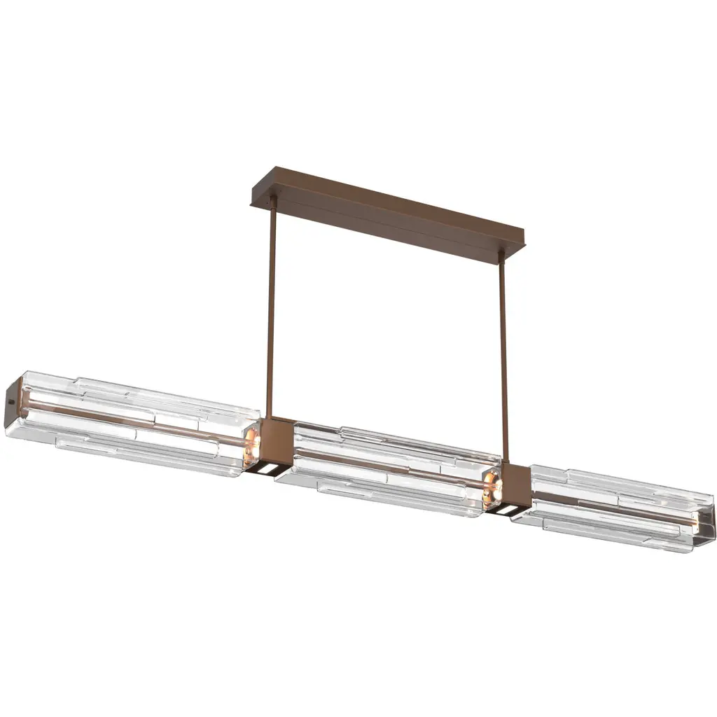 Ledgestone Linear Dining-67-Flat Bronze-Ledgestone Blown Glass - Clear-Threaded Rod Suspension-LED