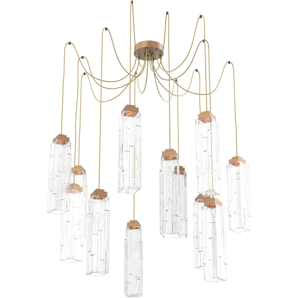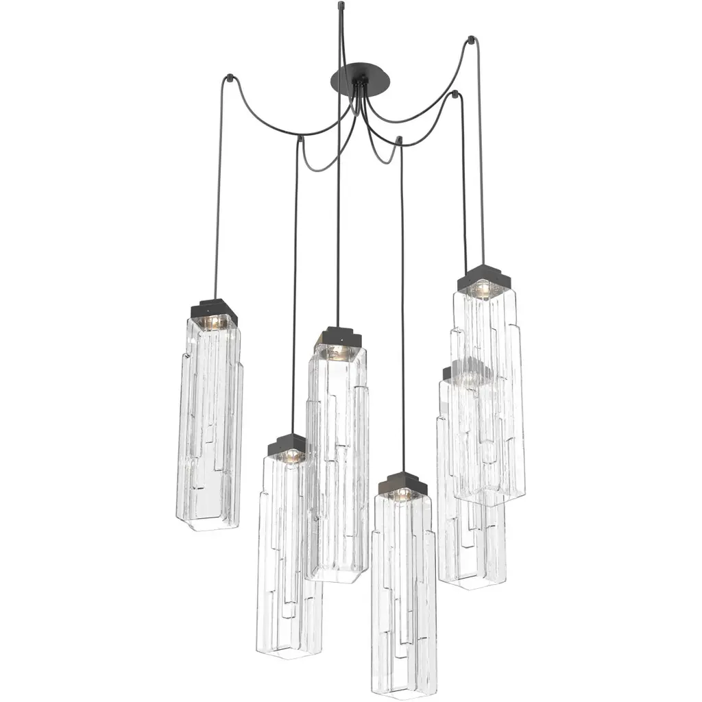 Featuring our oversized 22H Ledgestone crystal glass, this versatile chandelier style enables customization of the placement and height of each pendant. Ledgestone glass is handcrafted by Hammerton artisans in Salt Lake City and illuminated with integrated LED. Choose from several finishes.