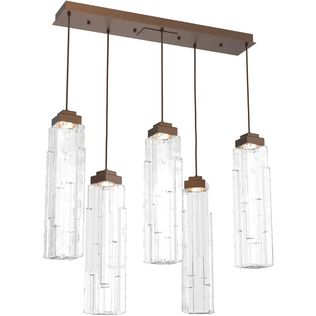Ledgestone Linear Multi-Port -05-Gilded Brass-Ledgestone Blown Glass - Clear-Brass Cloth Braided Cord-LED