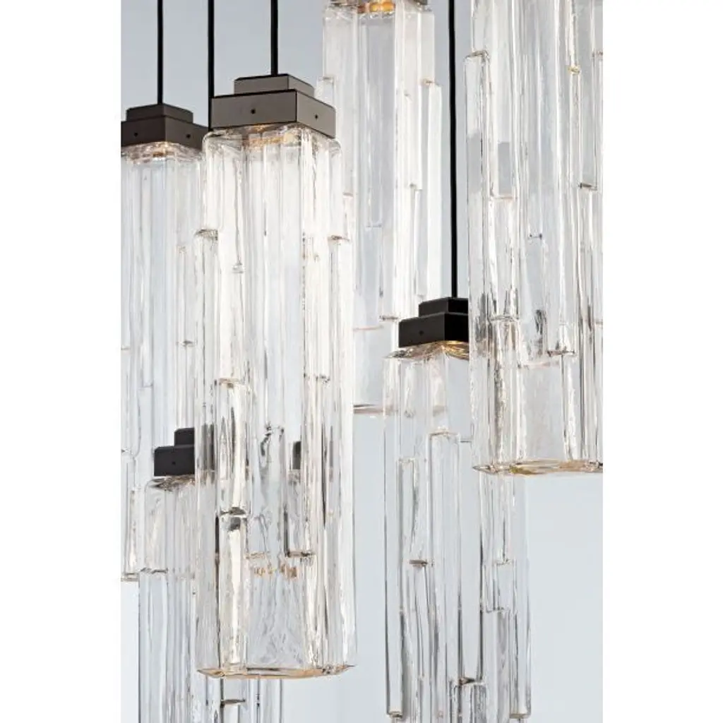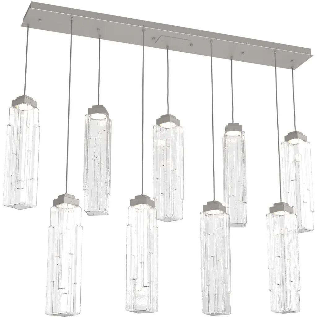 Ledgestone Linear Multi-Port -05-Matte Black-Ledgestone Blown Glass - Clear-Black Cloth Braided Cord-LED