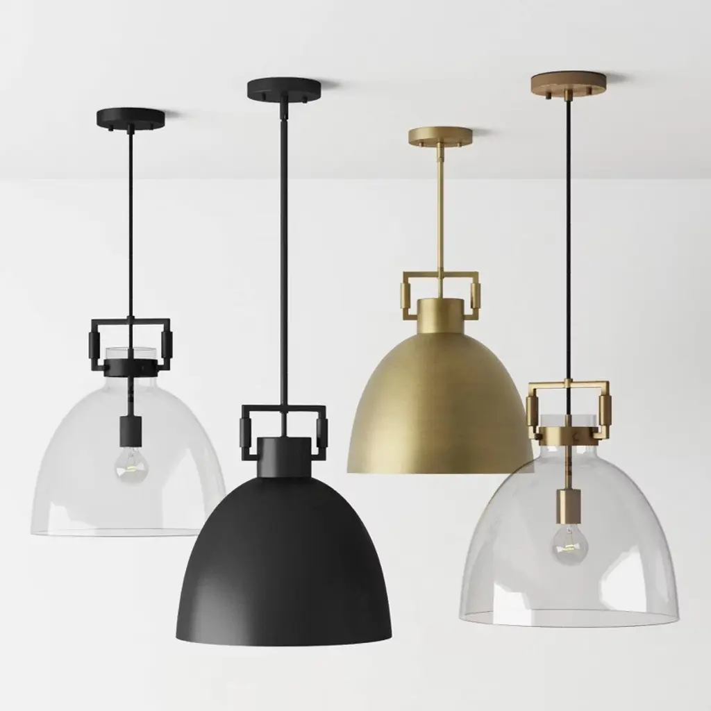 Leigh Glass Dome Pendant Ceiling Light, Adjustable Height - Nathan James: Industrial Elegance, Clear Shade