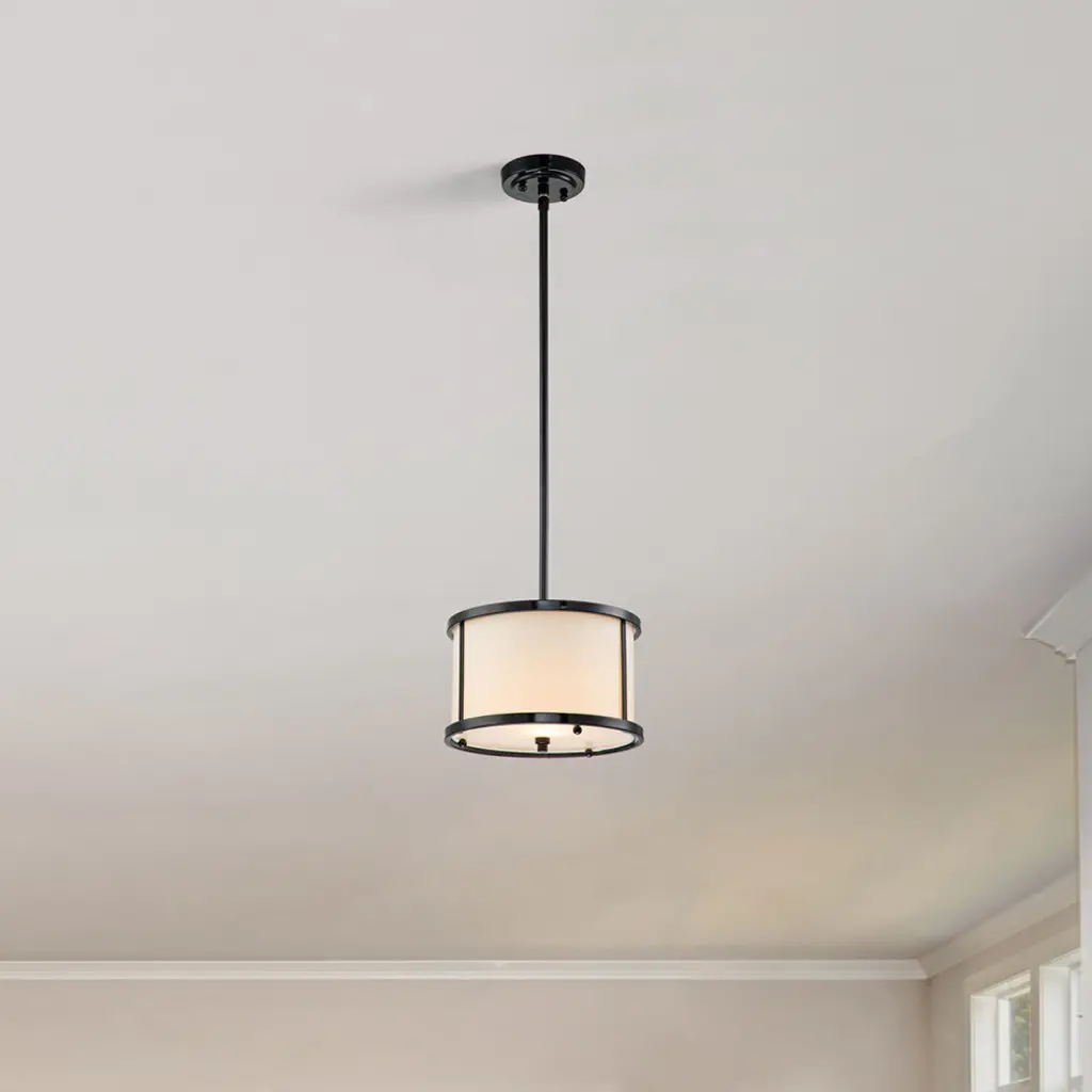 A one-of-a-kind design that is the perfect focal point in our Black finish. Simple, sophisticated design and on-trend Black finish makes this go-anywhere mini pendant and ideal option for creating ambient light in a charming and stylish way. The beautifully designed Lemuria series has a Black outer shade with a cream linen fabric inner shade and glass diffuser to soften the light. The Mini pendant is shipped with extra stems for an adjustable height, and can be installed as a semi-flush.