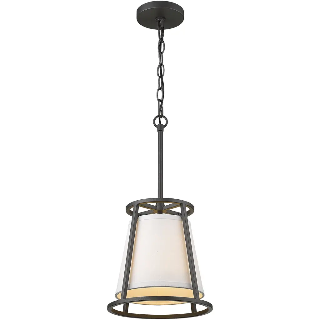 Illuminate your living space with the alluring glow of this elegant, single-light mini pendant. With a versatile design that works well in almost any room, this sophisticated fixture blends an iron ore finish frame with a soft, white shade for beautiful ambiance.