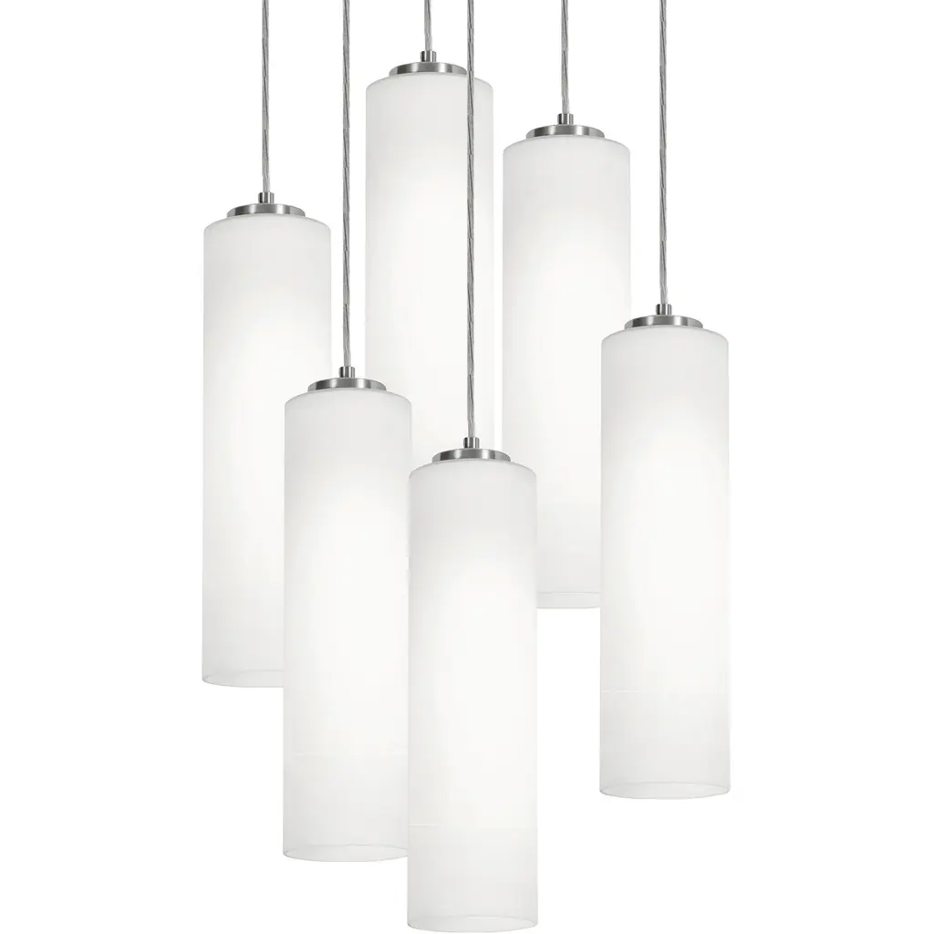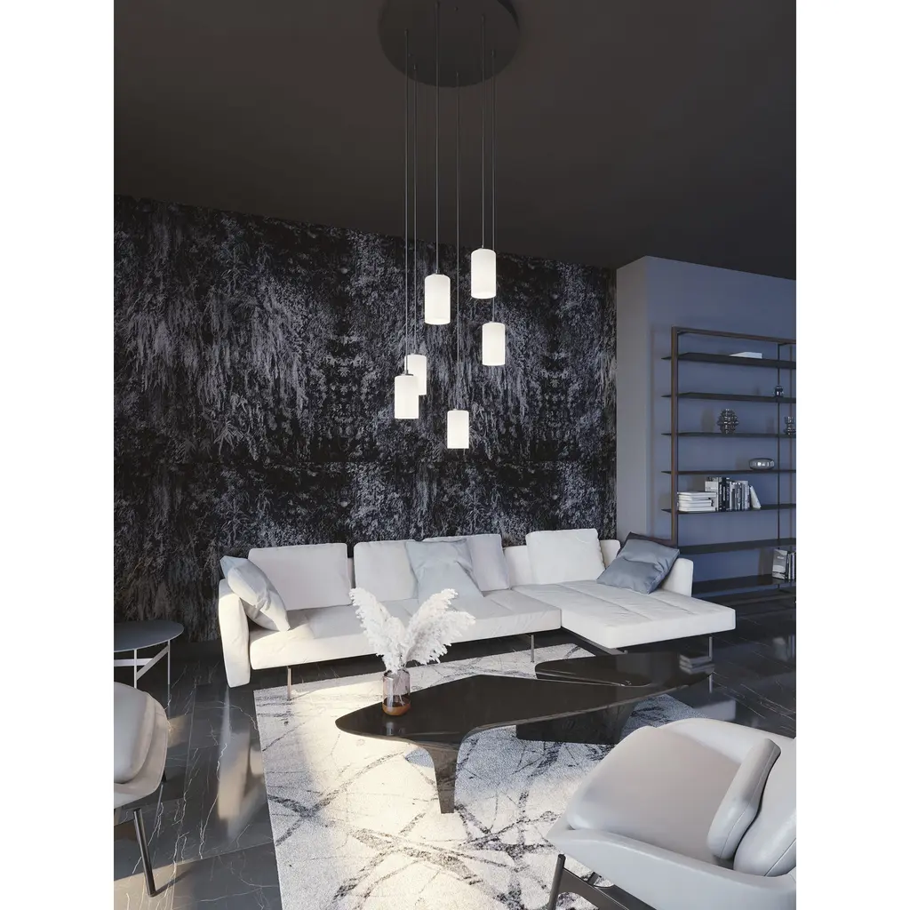 The Leo 6-Light Cylinder Pendant is a stunning blend of industrial design and modern elegance. Crafted from durable steel and glass, this pendant features six sleek cylindrical lights suspended from a cord, creating a striking vertical orientation that draws the eye upwards. The integrated diffuser softens the light, casting a warm, inviting glow throughout your space. Perfect for dining rooms, kitchens, or entryways, the Leo adds a bold, sophisticated statement to any room. Please note, bulbs are not included, giving you the flexibility to choose your ideal light source.