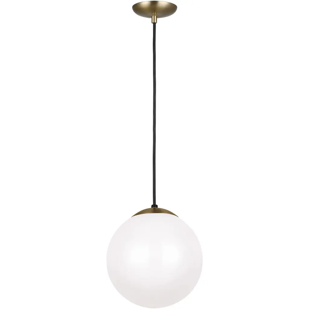 The Leo - Hanging Globe one light indoor pendant in white enhances the beauty of your home with ample light and style to match today's trends. While hanging globes are one of lighting's hottest trends, Sea Gull's timeless Leo Collection has been around for 50 years! Constantly evolving with the times, these classic pendants are now offered with NEW Clear Seeded glass and in Satin Aluminum finish. Adjustable cloth cords allow for unlimited variations of hanging heights. All glass softly diffuse the light, each fixture comes with 54?¦? of cuttable cord to customize the installation exactly to your needs. Easily convert every piece in the collection to LED by purchasing LED replacement lamps sold separately. All fixtures are qualified and California Title 24 compliant and damp rated for use in sheltered, damp environments like bathrooms, covered patios or porches.