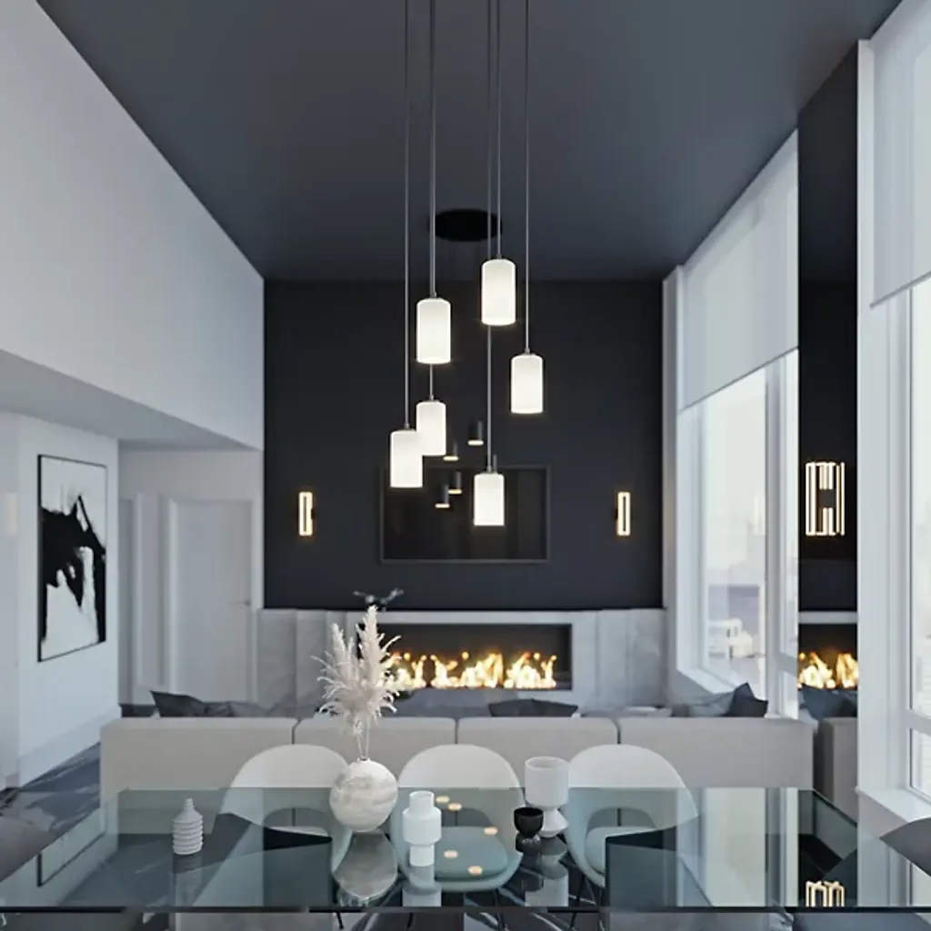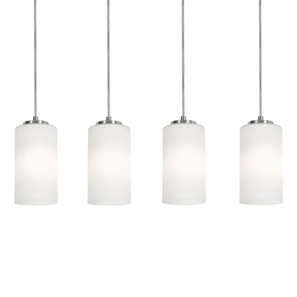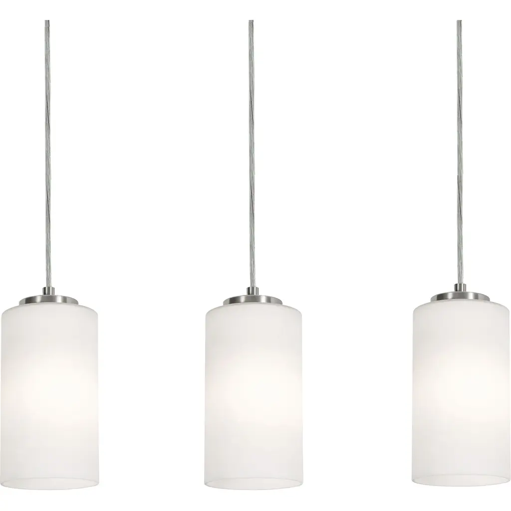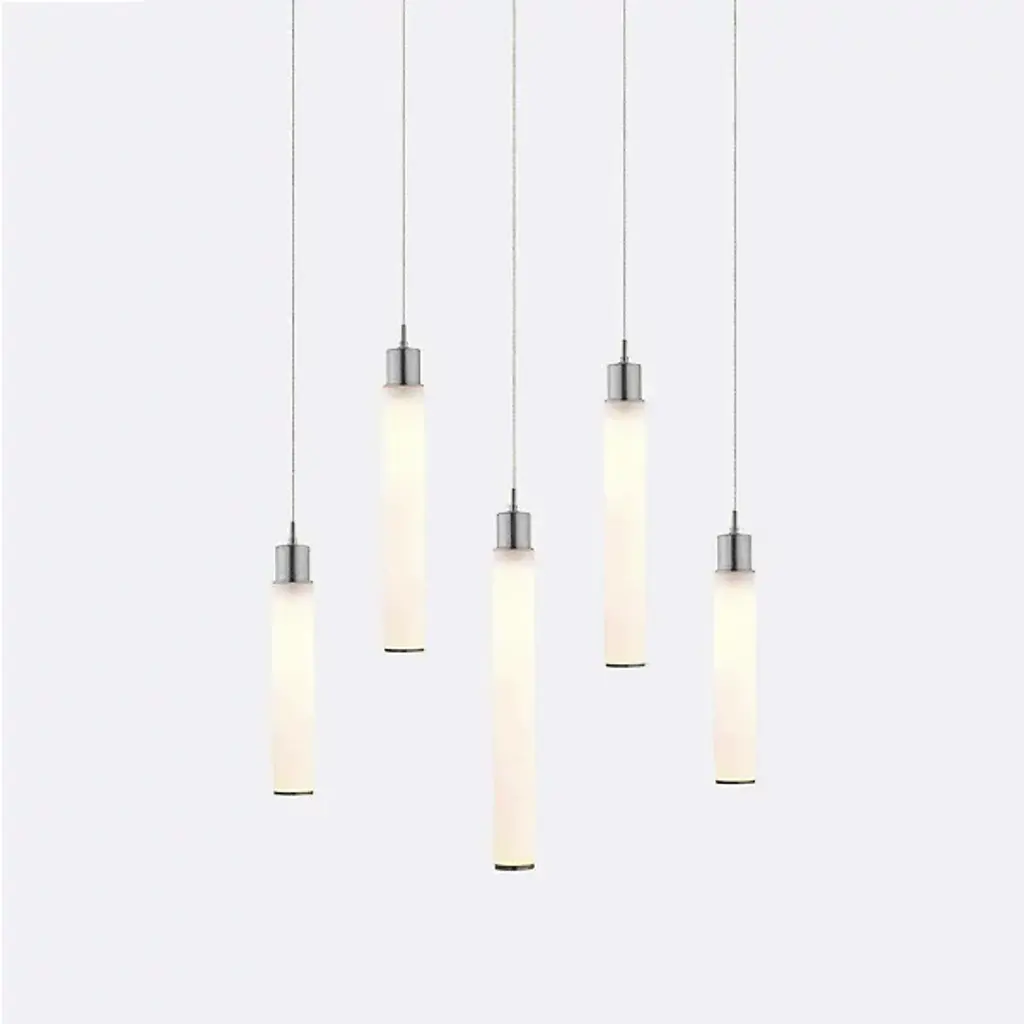 A contemporary cluster for modern spaces. The Leo Round Multi-Light Pendant by AFX Lighting has several cylindrical Glass shades suspended from a single round Steel canopy. Each shade provides a clean profile around the light bulb within, and it helps to diffuse even ambience all around a space. Adjust the suspension cords to create the staggered look you desire over a round dining table or hanging in a tall entryway or stairwell.