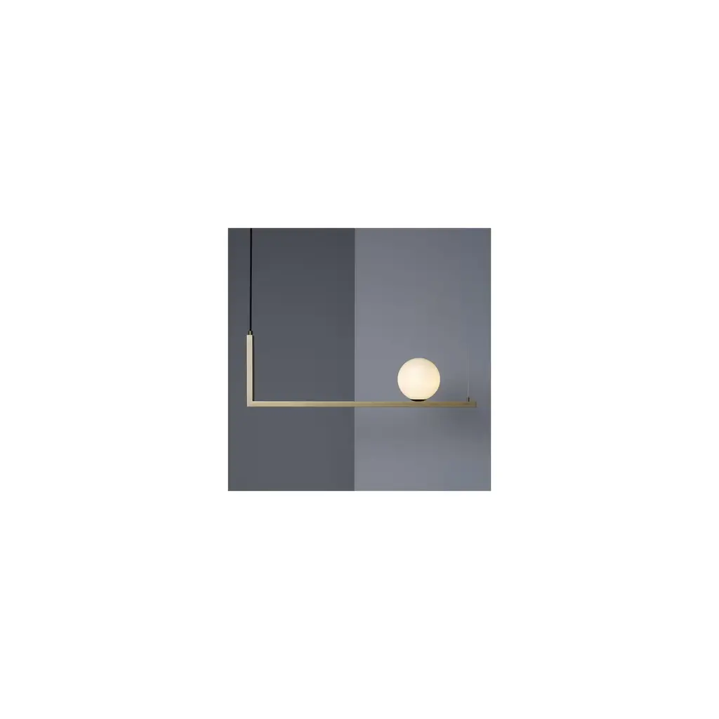 A striking example of refined craftsmanship and minimalist allure, this pendant lamp boasts a simple silhouette of a brass horizontal bar making a perpendicular corner and suspended on a self-supporting black fabric cord and a steel cable with a rapid fixing system. Featuring an elegant burnished natural brass finish, this piece is also available in matte or polished black nickel, please ask the Concierge for details. The LED bulb (not included) supported is max 5W with G9 of 350lm and 2700°K. Contract and commercial certifications available upon request.