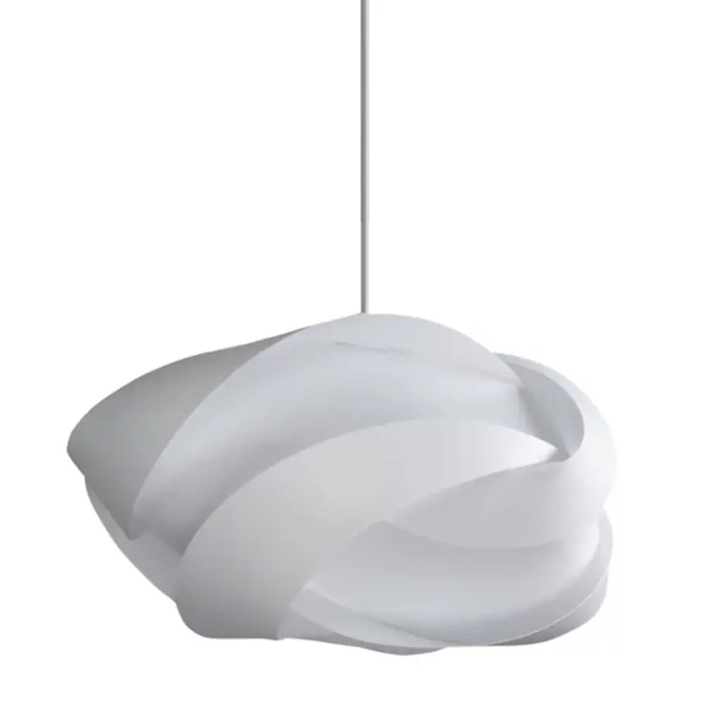 A chandelier of great emotional impact, based on the creative intuition of the designer, together with the research on materials, technology and design conducted by di Luceplan. A new protagonist for living areas in the home, but also for contract applications. The size is impressive, yet the overall image is ethereal, like an organism floating in space. Levante (the name suggests lightness and wind, but also a clear reference to oriental aesthetics) stems from the intersection of three large fans, made in an unprecedented material for the design sector, borrowed from the world of food, with an appearance similar to rice paper, to spread light in a uniform way over surfaces. The thickness of the veils is minimal, and they are attached with magnets to the central core that contains the light source, hidden as if it were an organic, beating heart. Features