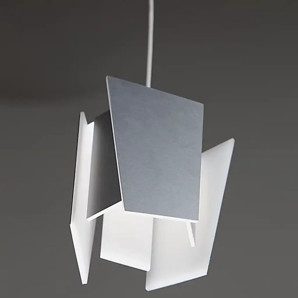 The Cerno Levis LED Mini Pendant features a distinctive, fractal shade composed of several individual polymer panels that contribute a stunning geometry for modern spaces. In addition to having a sharp, sculptural presence, these panels create a unique play of light, with the warm or cool LED light source peeking through the openings while also providing down light. The two canopy options provide flexibility when installing the Levis—both requiring space for the included LED driver. Use the extended canopy option when adequate junction box space is not available. The low canopy option still requires space in the junction box for the included LED driver, but is a more standard, slimmer option.