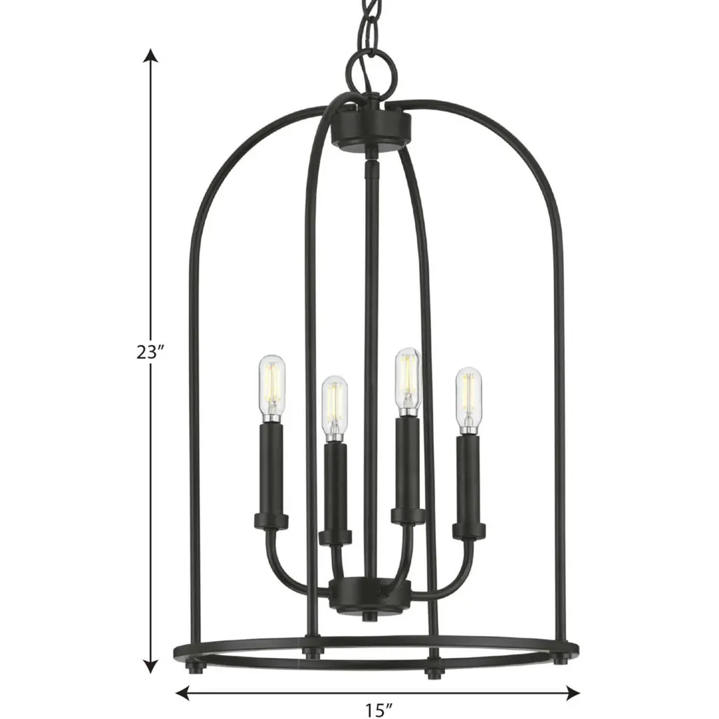Complement your interiors with the Leyden Collection 4-Light Matte Black Farmhouse Foyer Pendant Light. The gorgeous open-frame and candlestick light bases are coated in a beautiful matte black finish. Light sources glow from atop the smooth light bases for graceful illumination.